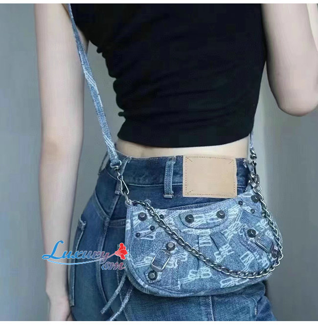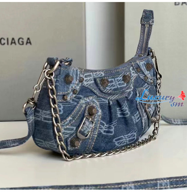 [스페셜오더]BALENCIAGA-695814 발렌시아가 블루 데님 LE CAGOLE MINI 체인백