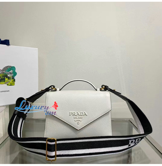 [스페셜오더]PRADA-1BD317 프라다 화이트 사피아노 모노그롬 숄더 백