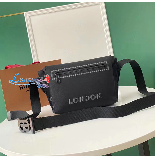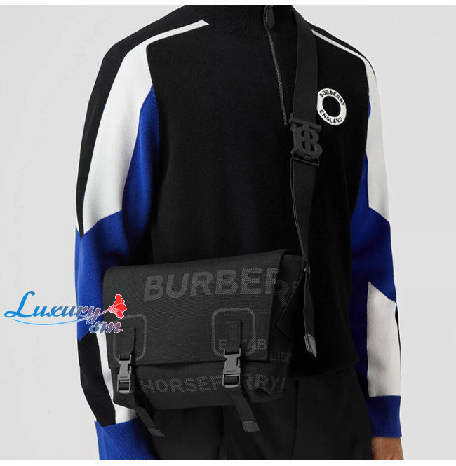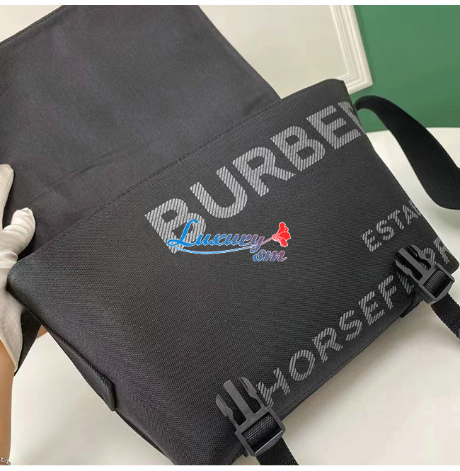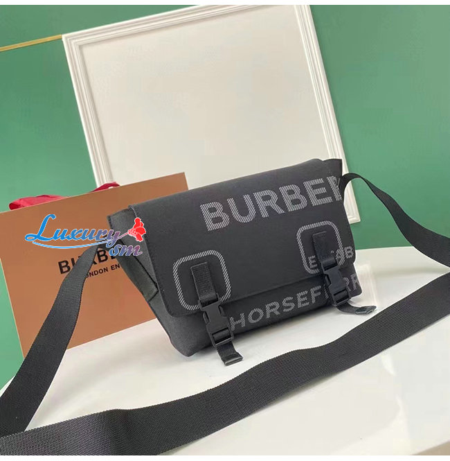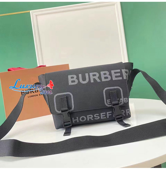 [스페셜오더]BURBERRY-80584901 버버리 블랙 호스페리 프린트 나일론 스몰 메신저 백