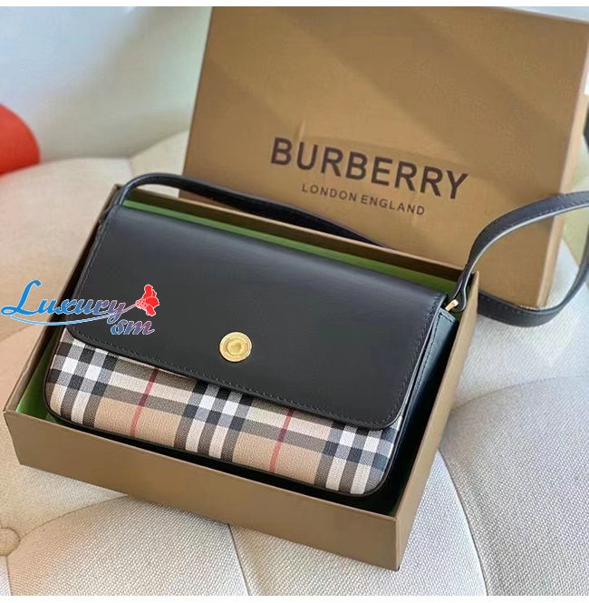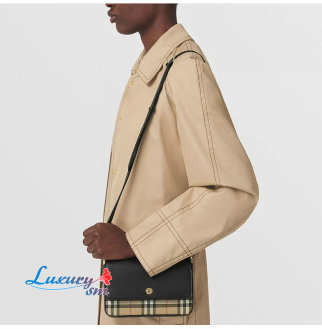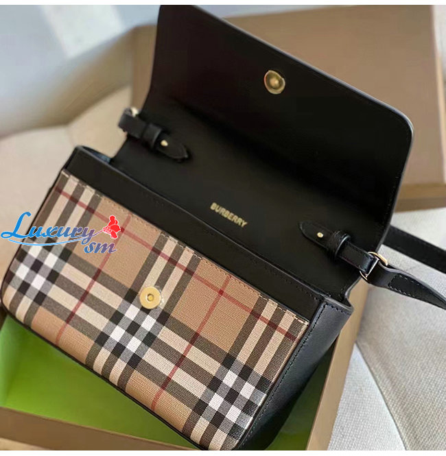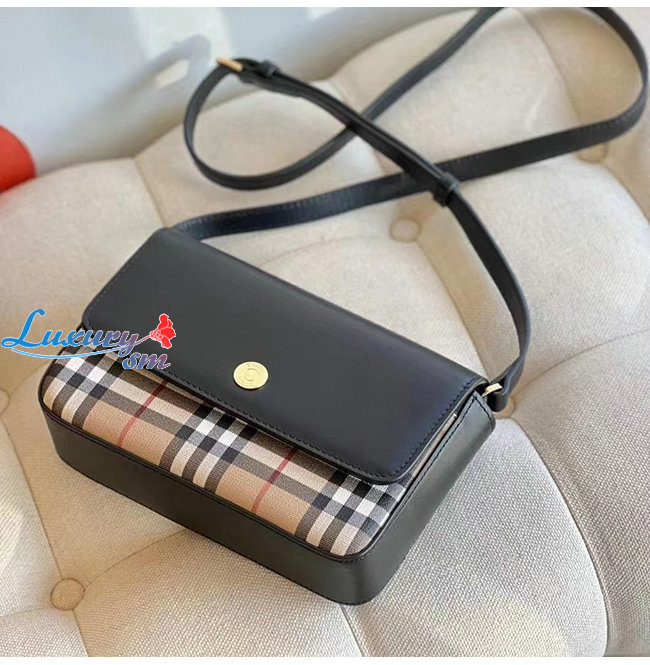 [스페셜오더]BURBERRY-80492431 버버리 블랙 빈티지 체크 레더 미니 노트 백