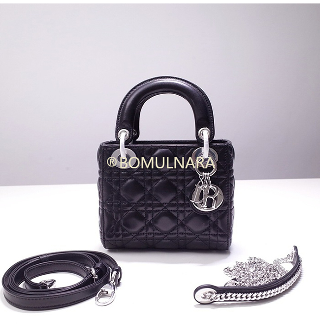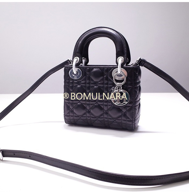 [스페셜오더]CHRISTIAN DIOR-M0505P 디올 블랙 까나쥬 실버 LADY DIOR 미니 백