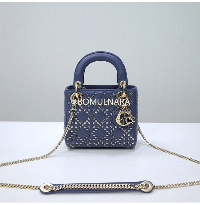 [스페셜오더]CHRISTIAN DIOR-M0505O 디올 데님 블루 럭키스타 까나쥬 골드 LADY DIOR 미니 백