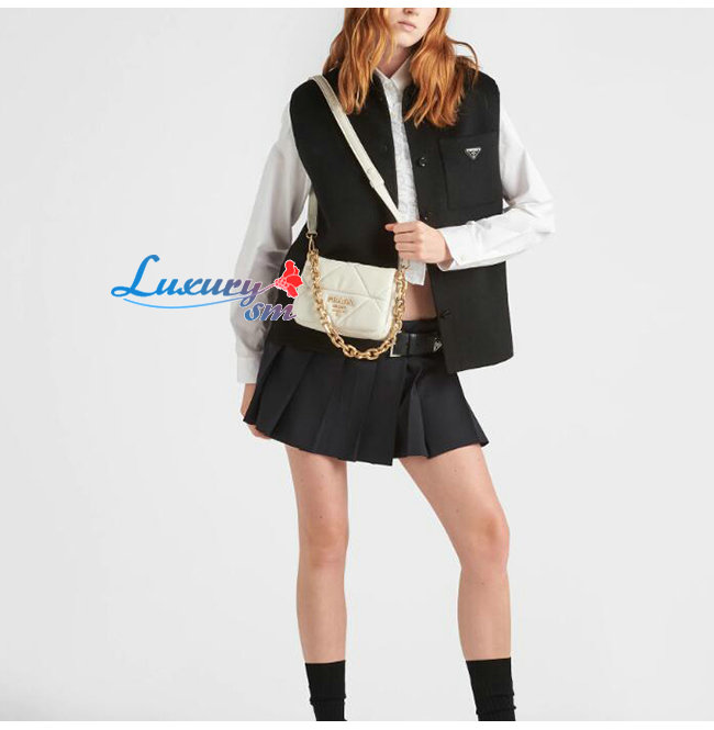 [스페셜오더]PRADA-1BD292 프라다 화이트 나파 가죽 패치워크 숄더 백