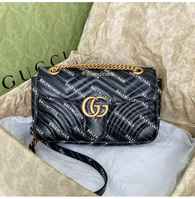 [스페셜오더]구찌 × 발렌시아가 해커 프로젝트 블랙 스몰 GG 마몽 마틀라쎄 숄더백