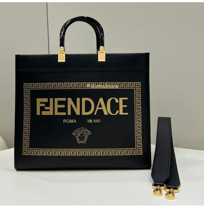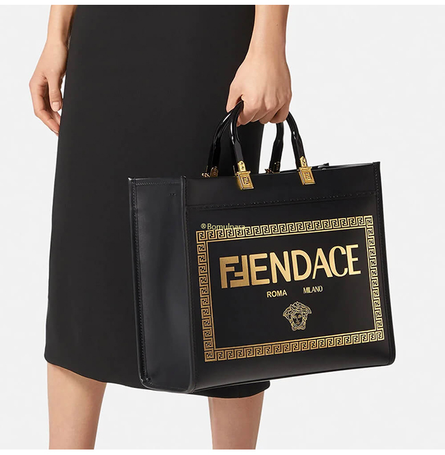[스페셜오더]FENDI X VERSACE DBFI039 펜디 X 베르사체 펜다체 메두사 골드 바로크 블랙 미디엄 핸드백