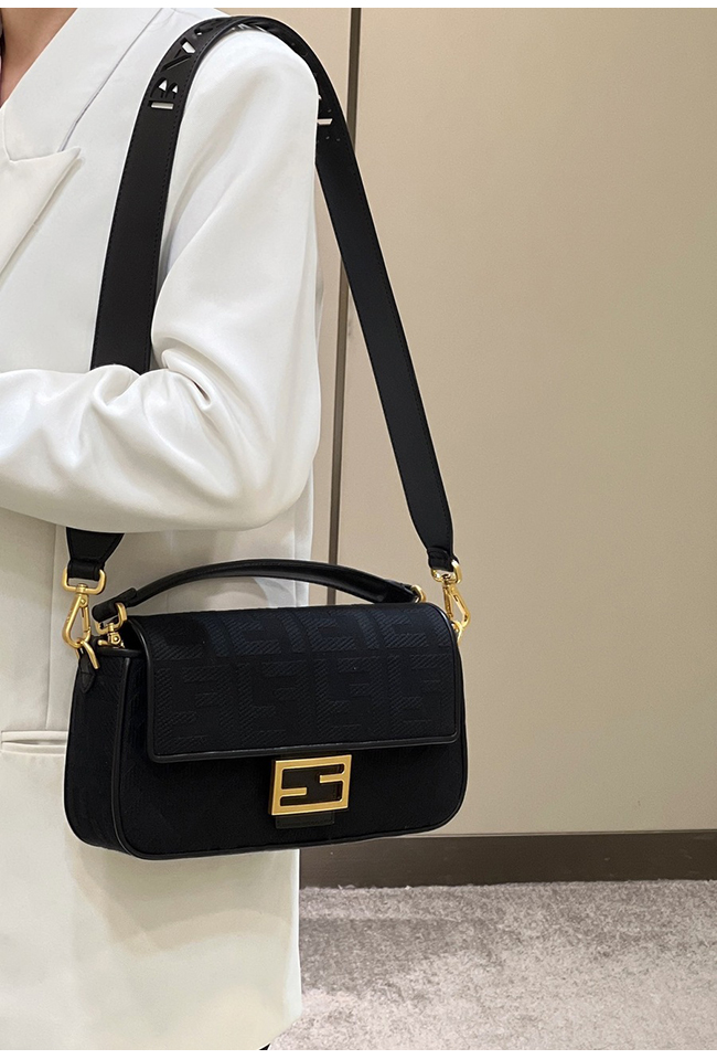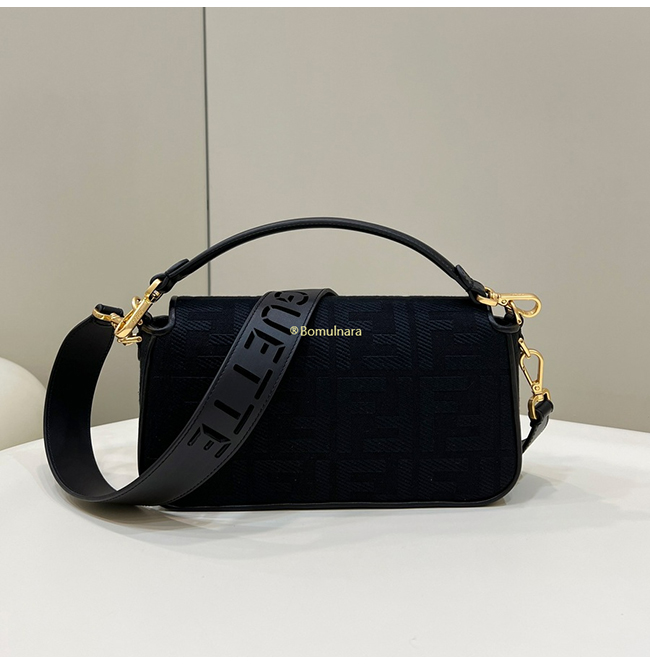 [스페셜오더]FENDI-8BR600 펜디 블랙 FF 캔버스 레이저컷 레터링 스트랩 바게트 백 27CM