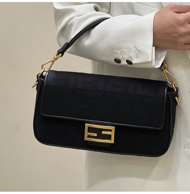 [스페셜오더]FENDI-8BR6008 펜디 송아지 가죽 톤온톤 위브 장식 블랙 바게트 백 가격 : 450,000원