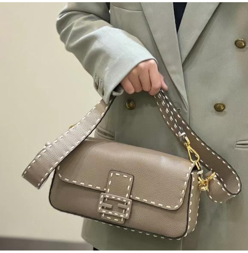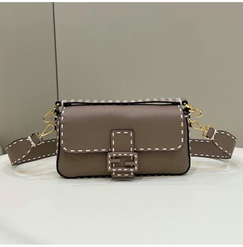 [스페셜오더]FENDI-8BR600 펜디 그레이 풀 그레인 가죽 미디엄 바게트 백