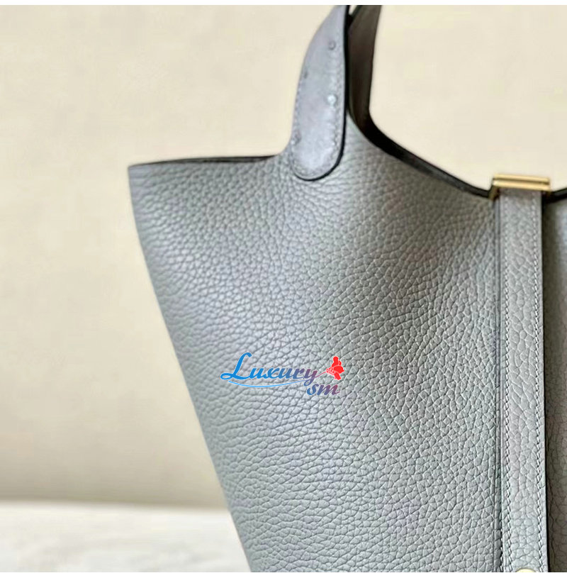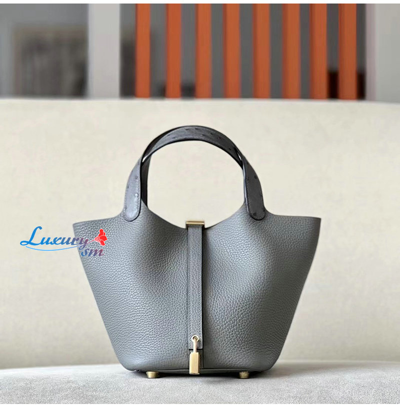[스페셜오더]HERMES-H056289 에르메스 그레이 끌레망스 가죽 타조 가죽 핸들 금장 피코탄 Picotin Lock 18 백