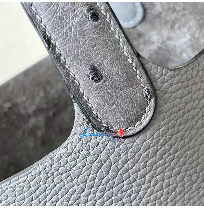 [스페셜오더]HERMES-H056289 에르메스 그레이 끌레망스 가죽 타조 가죽 핸들 은장 피코탄 Picotin Lock 18 백