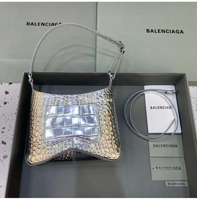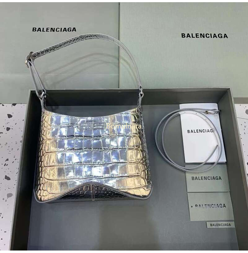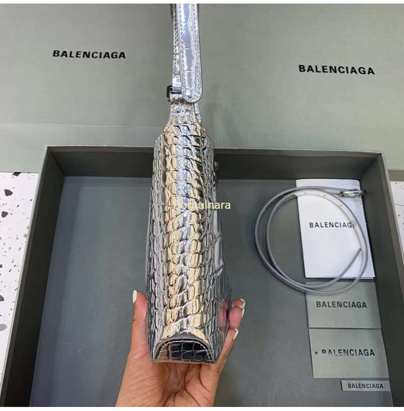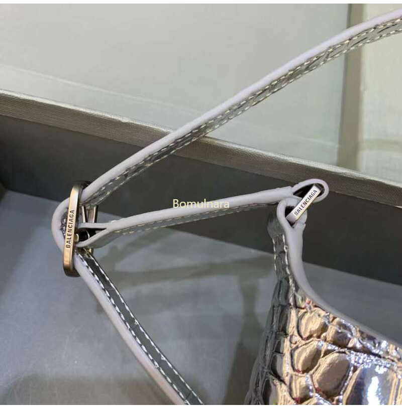 [스페셜오더]BALENCIAGA-695589 발렌시아가 메탈릭 실버 크로커다일 엠보싱 XX 스몰 호보 백