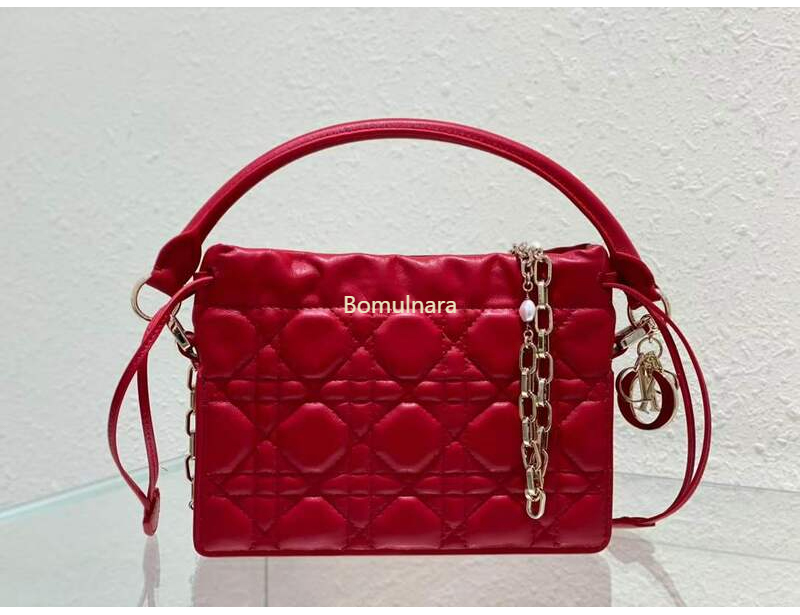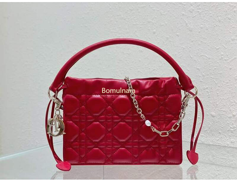 디올 레드 LADY DIOR 미니 드로우스트링 탑 핸들백