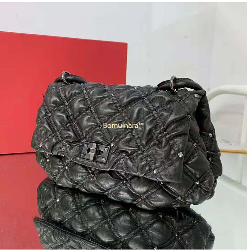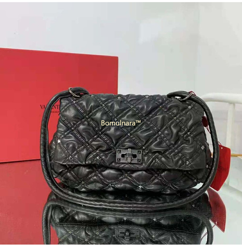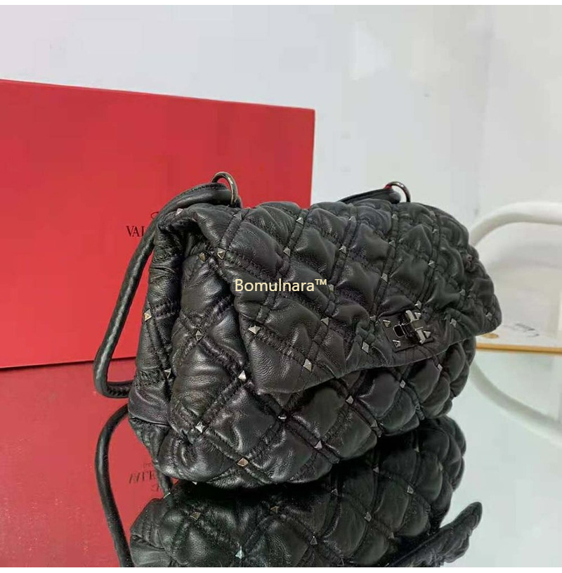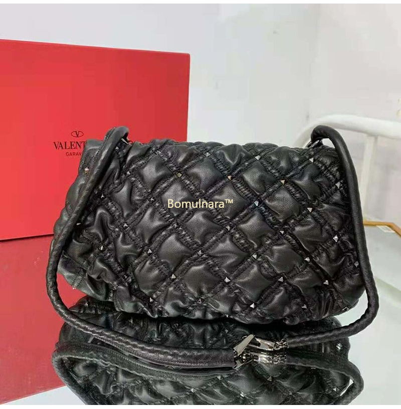 [스페셜오더]VALENTINO-UW0B0H 발렌티노 블랙 엠보싱 Spikeme 미디엄 숄더 백