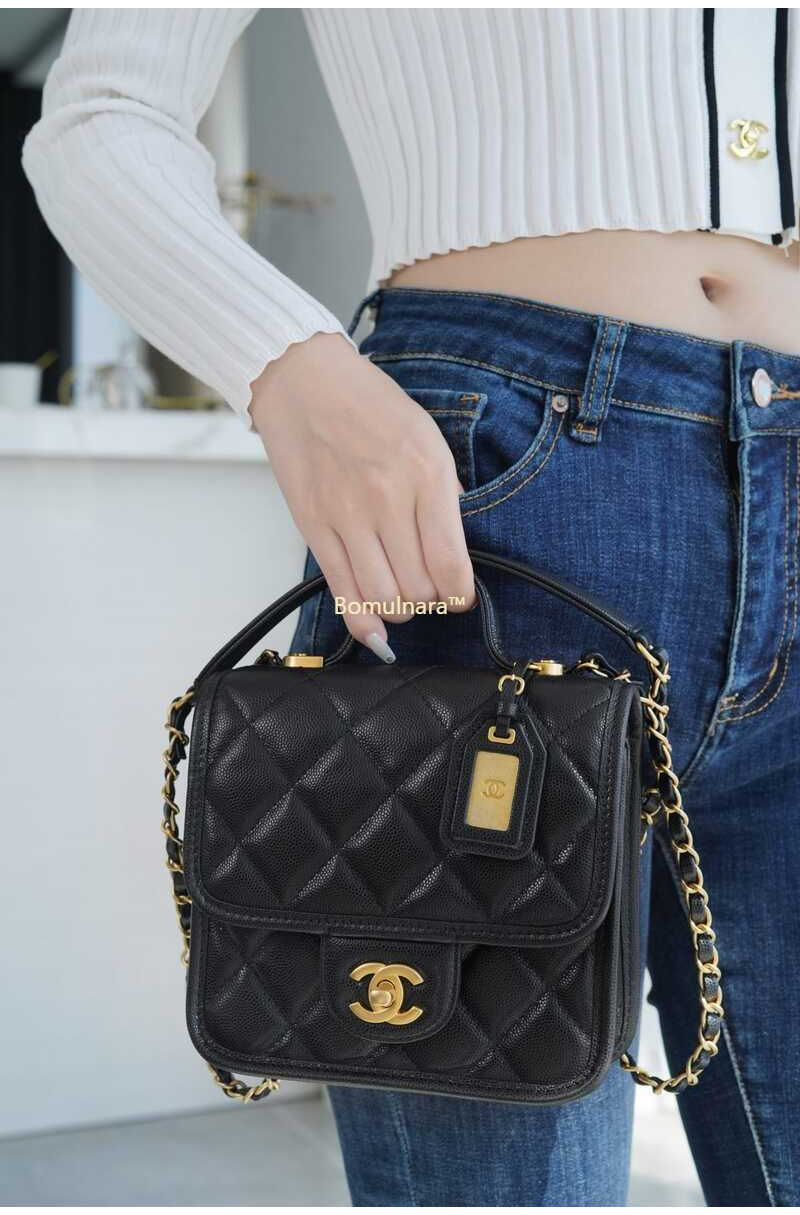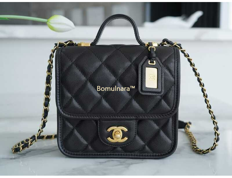 [스페셜오더]CHANEL-AS3652 샤넬 블랙 캐비어 스퀘어 스몰 탑 핸들 플랩 백