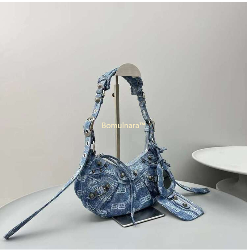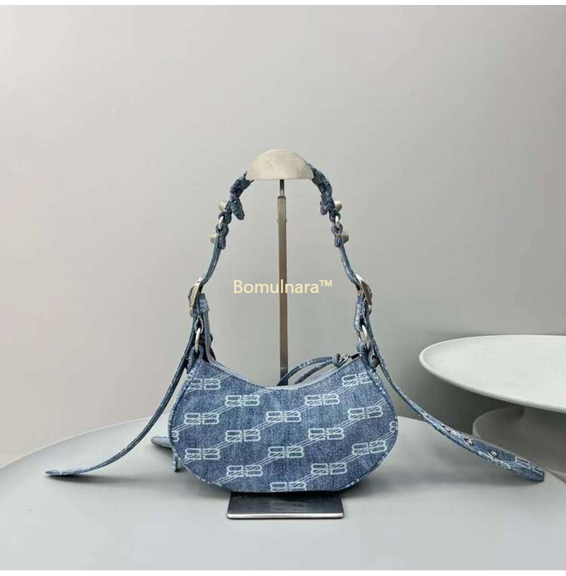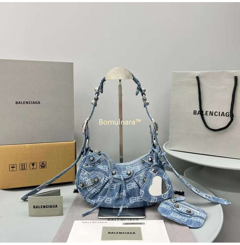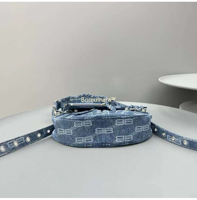 [스페셜오더]BALENCIAGA-671309 발렌시아가 블루 BB 모노그램 데님 실버 하드웨어 LE CAGOLE XS 숄더 백