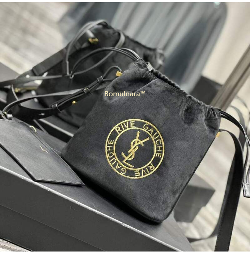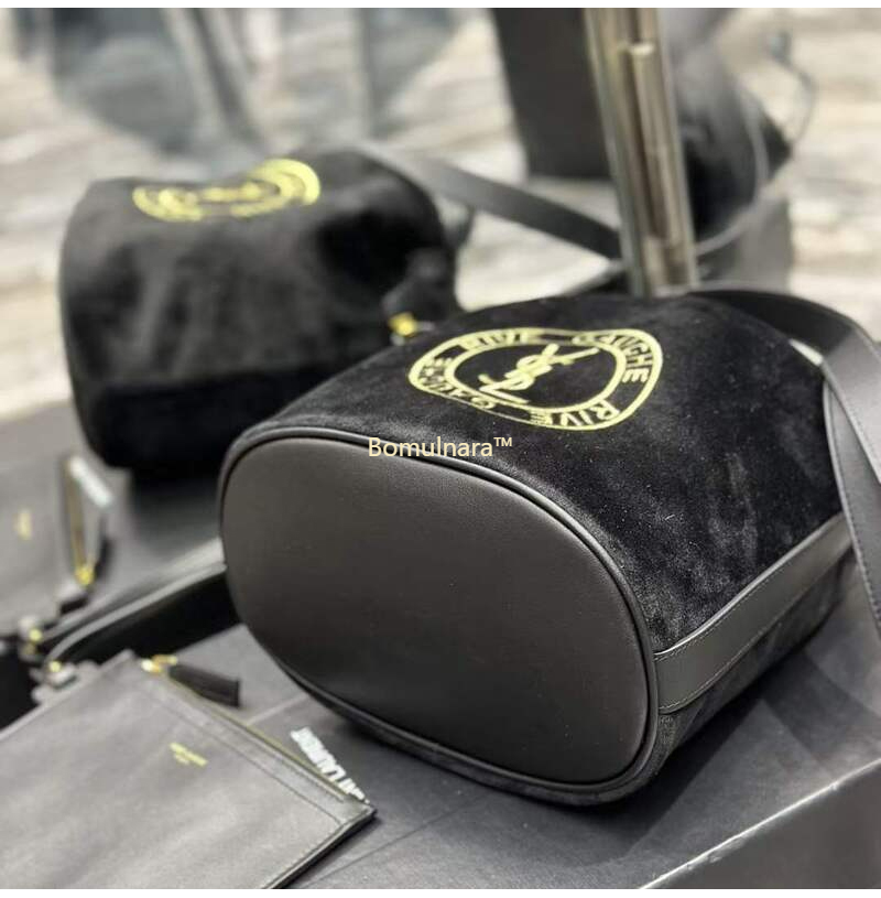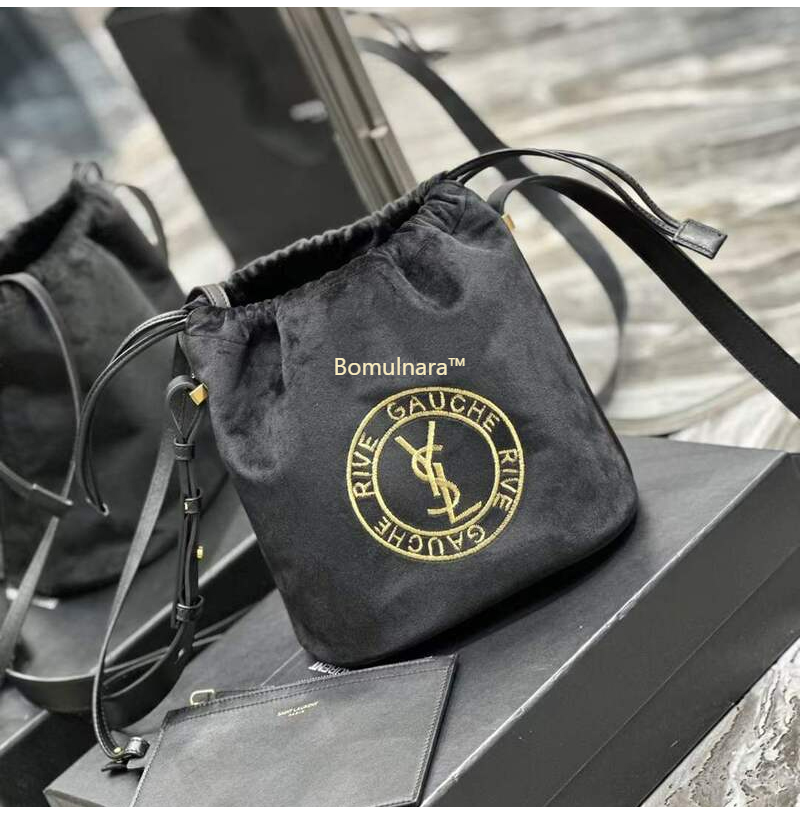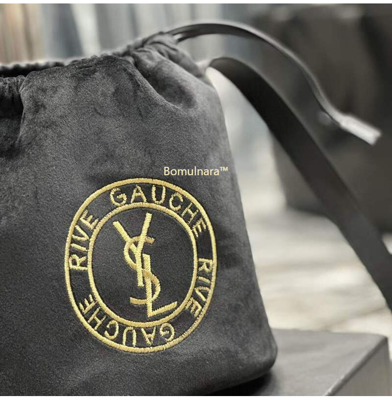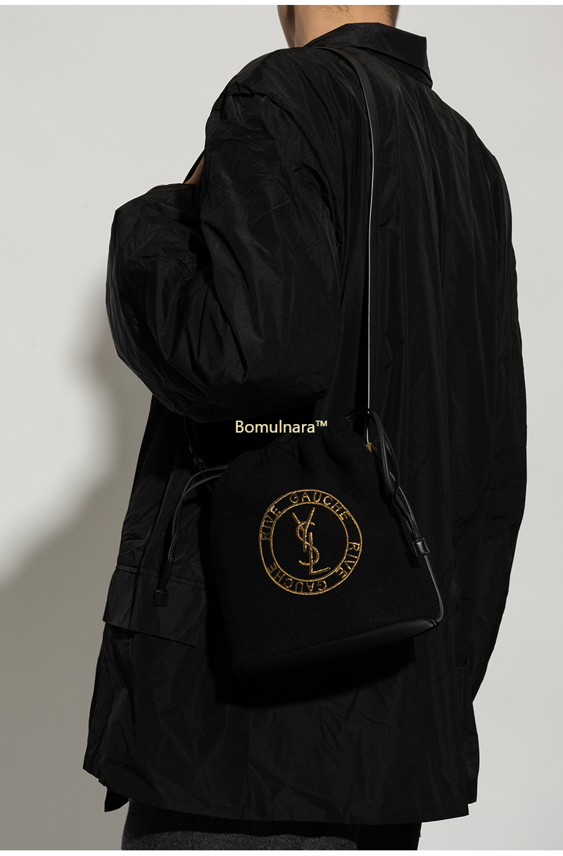 [스페셜오더]SAINT LAURENT-710261 생 로랑 블랙 울 RIVE GAUCHE 엠블럼 자수 버킷 백