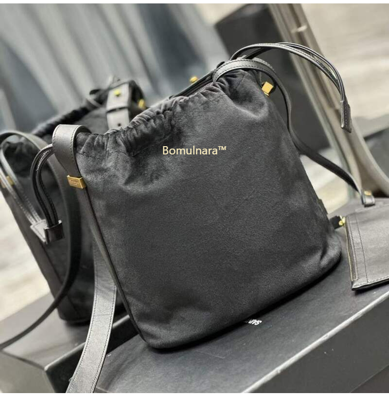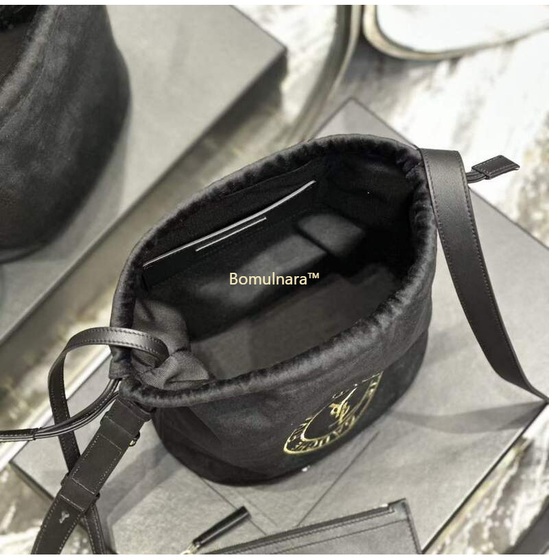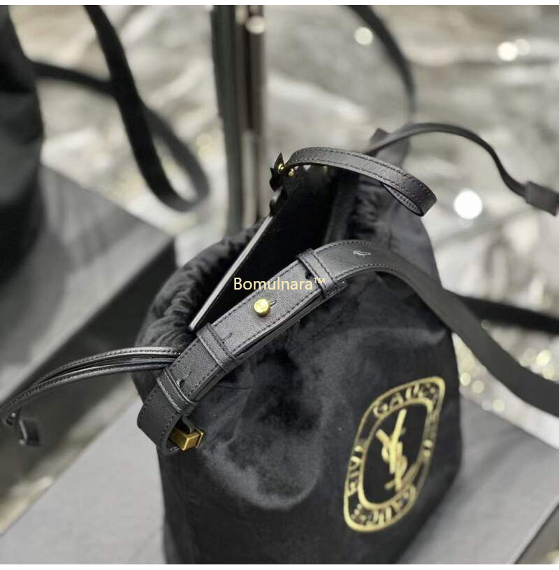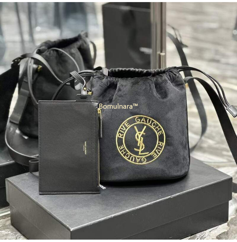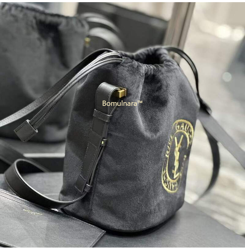 [스페셜오더]SAINT LAURENT-710261 생 로랑 블랙 울 RIVE GAUCHE 엠블럼 자수 버킷 백