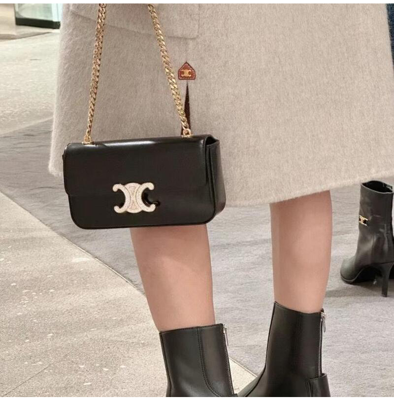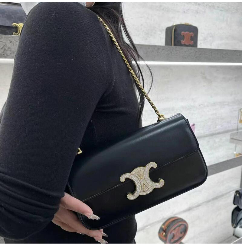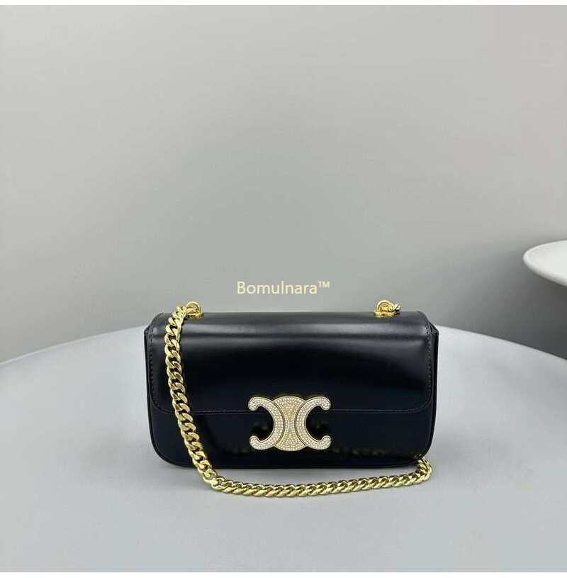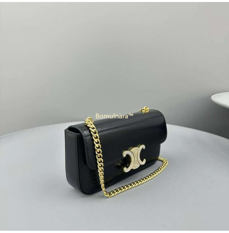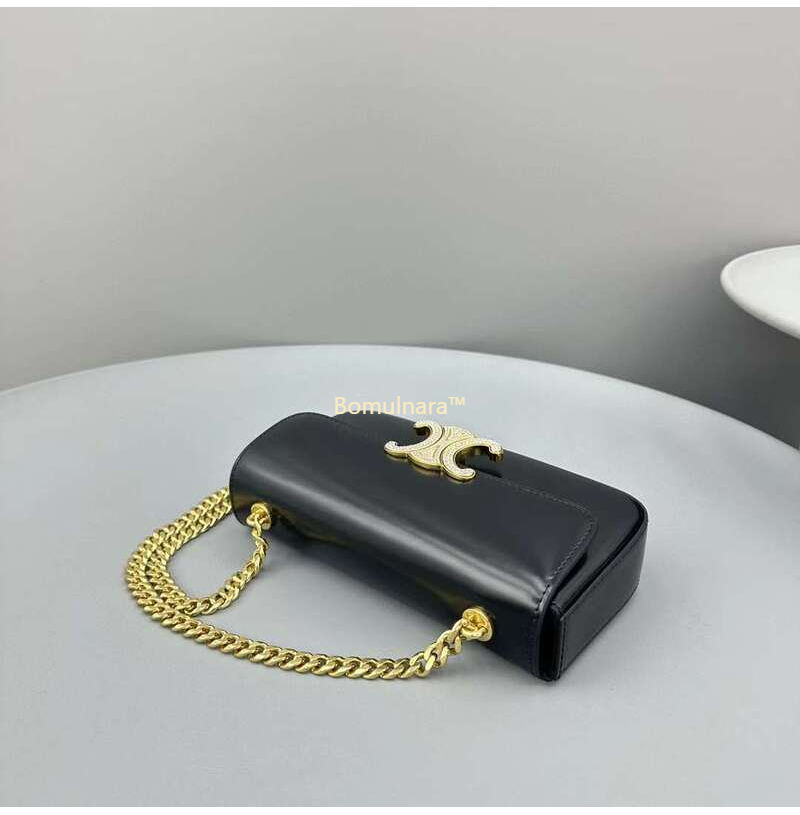 [스페셜오더]CELINE-112183 셀린느 블랙 트리옹프 크리스탈 스트라스 잠금장치 골드 체인 숄더백