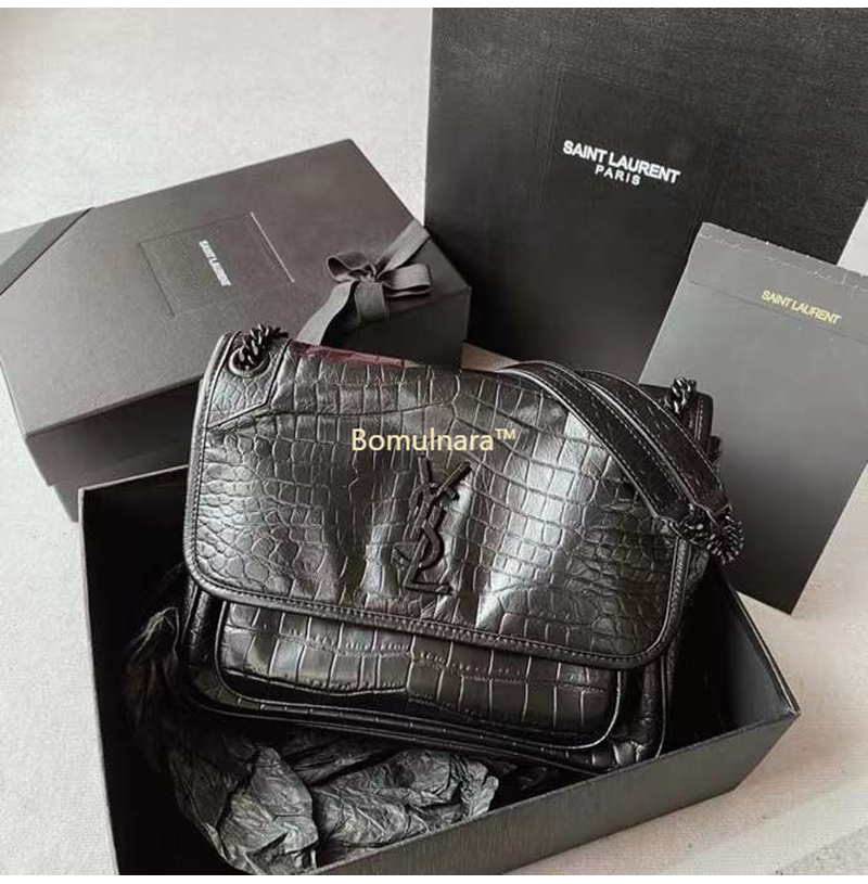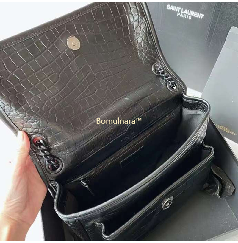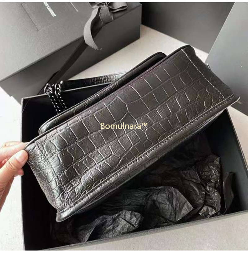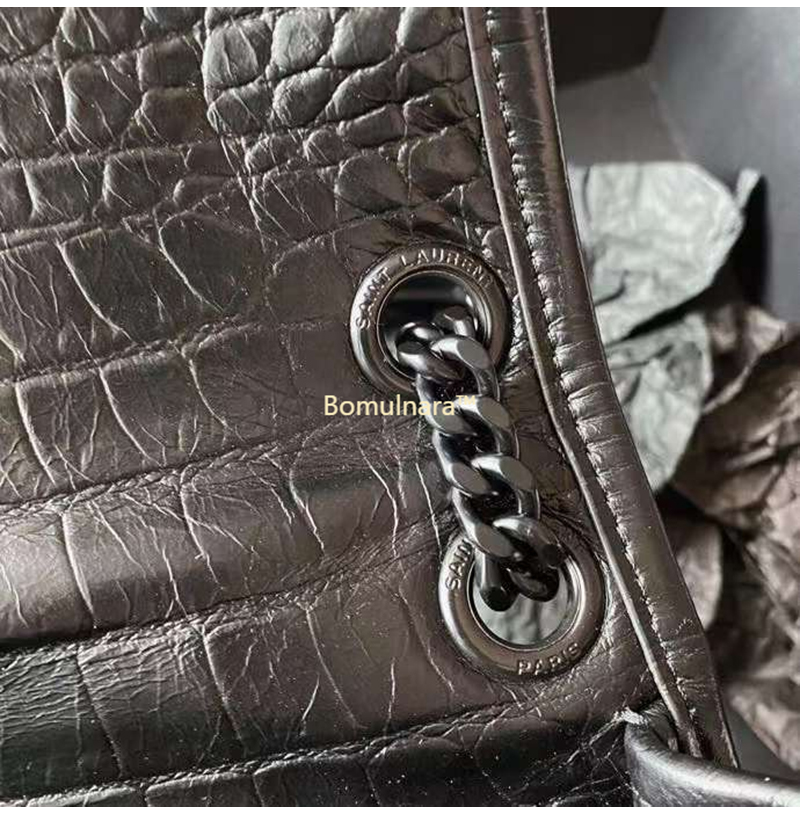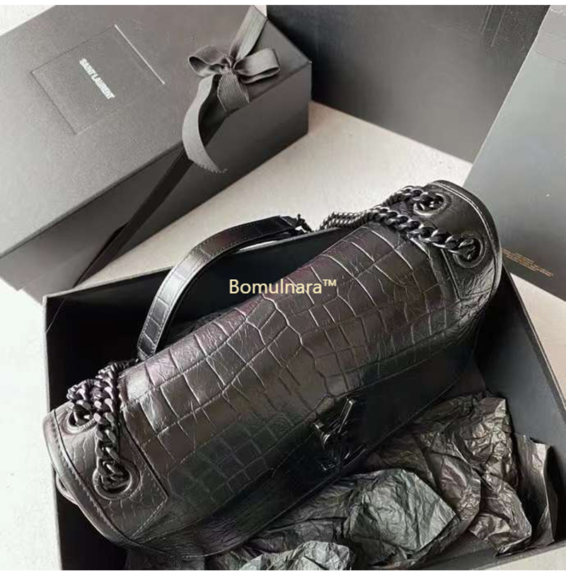 [스페셜오더]SAINT LAURENT-633150 생 로랑 블랙 크로커다일 양각 무늬 빈티지 NIKI 미디엄 숄더 백