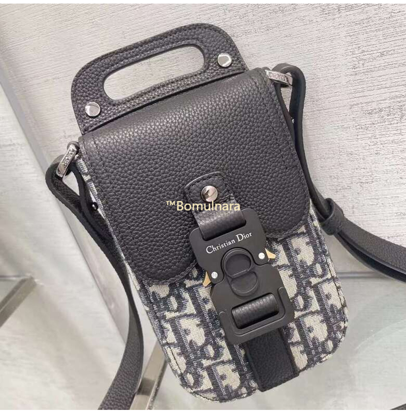 [스페셜오더]DIOR-2ADCA4 디올 베이지&블랙 Dior Oblique 자카드 SADDLE 스트랩 버티컬 파우치