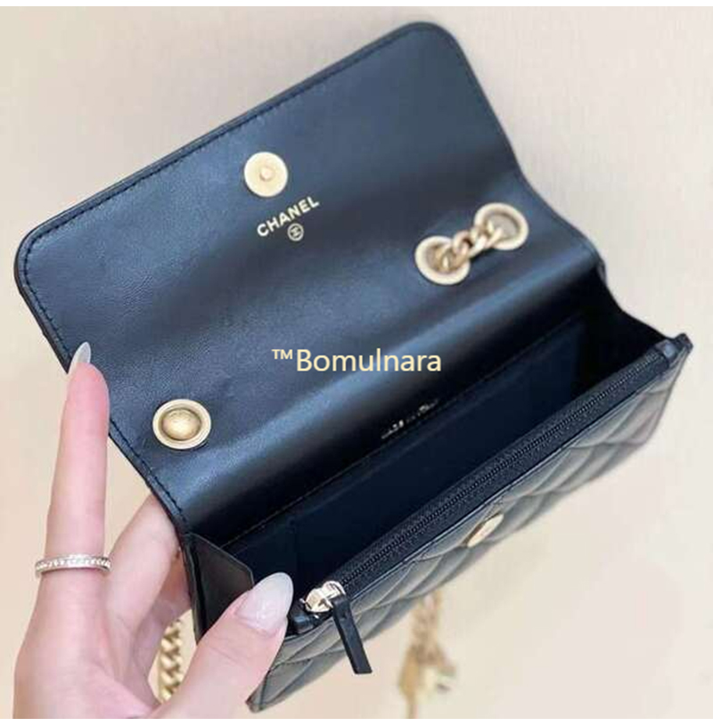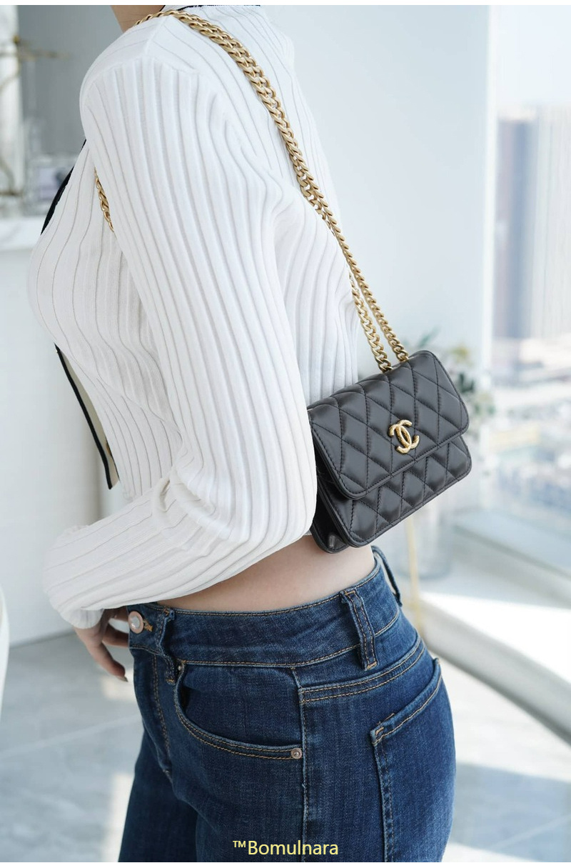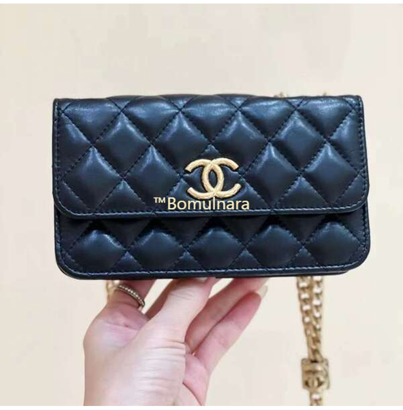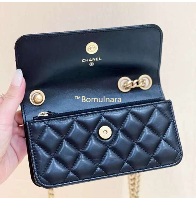 [스페셜오더]CHANEL-AP3047 샤넬 블랙 램스킨 플랩 폰 홀더 골드 체인 백