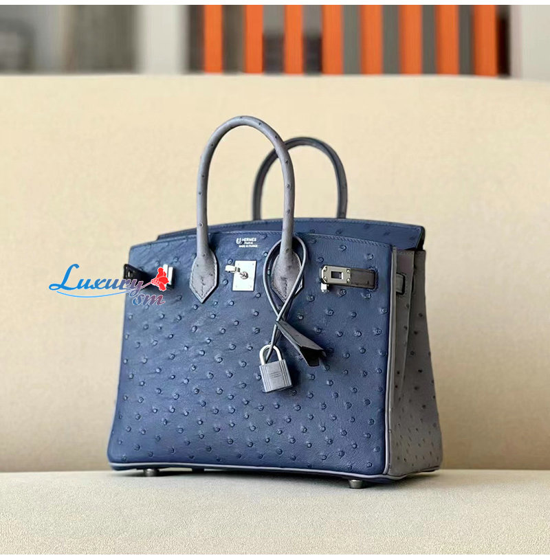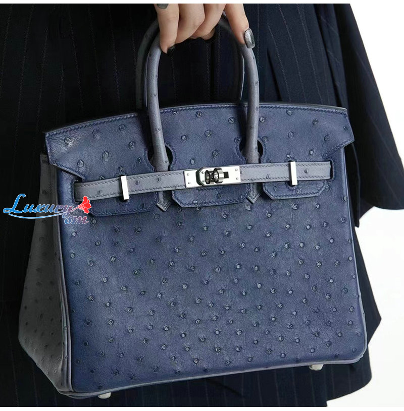 [스페셜오더]HERMES-BK25 에르메스 네이비 타조 가죽 Birkin 25