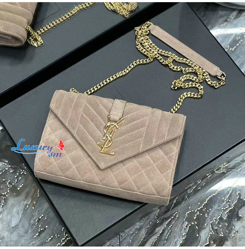 [스페셜오더]SAINT LAURENT-526286 생 로랑 베이지 스웨이드 가죽 스몰 엔벨로프 숄더백