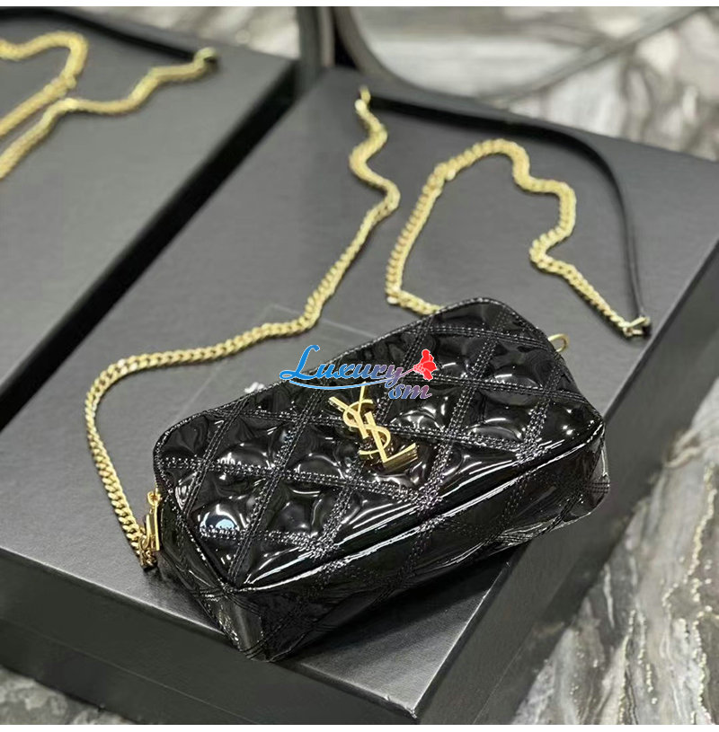 [스페셜오더]SAINT LAURENT-608941 생 로랑 블랙 페이턴트 가죽 베키 더블 집 파우치