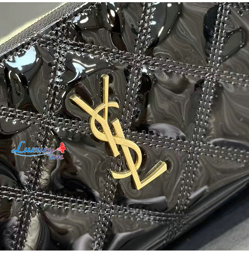 YSL 이니셜로 장식된 다이아몬드 퀼팅 더