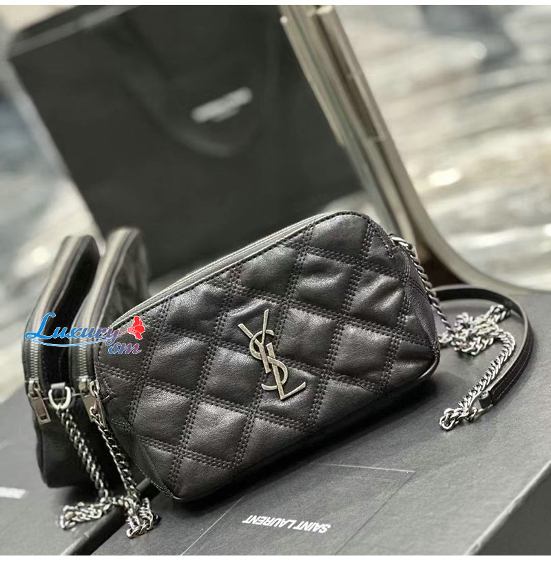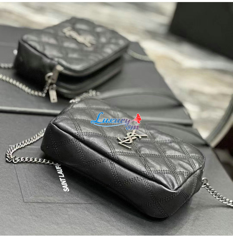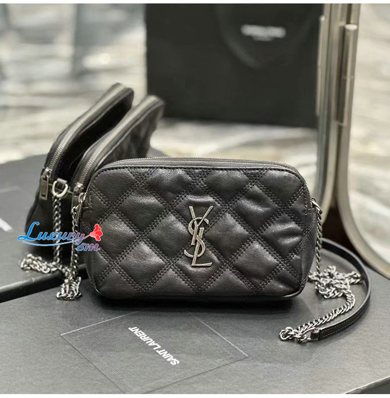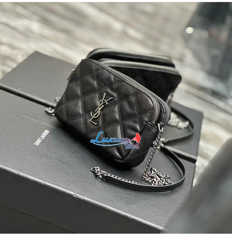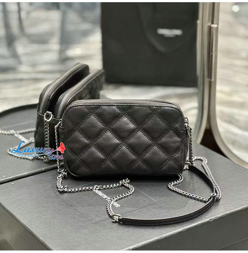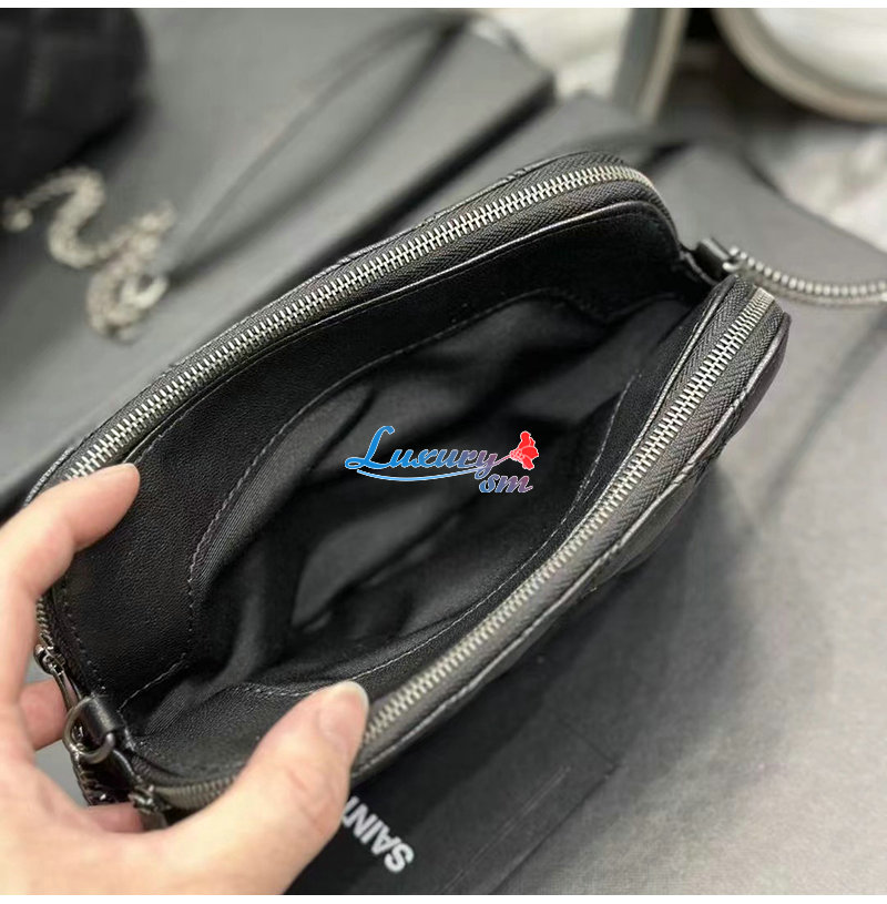 YSL 이니셜로 장식된 다이아몬드 퀼팅 더