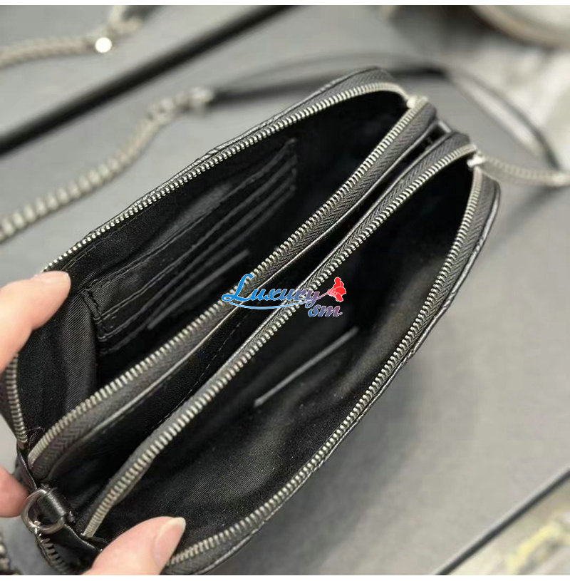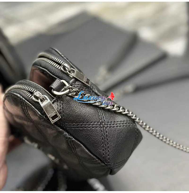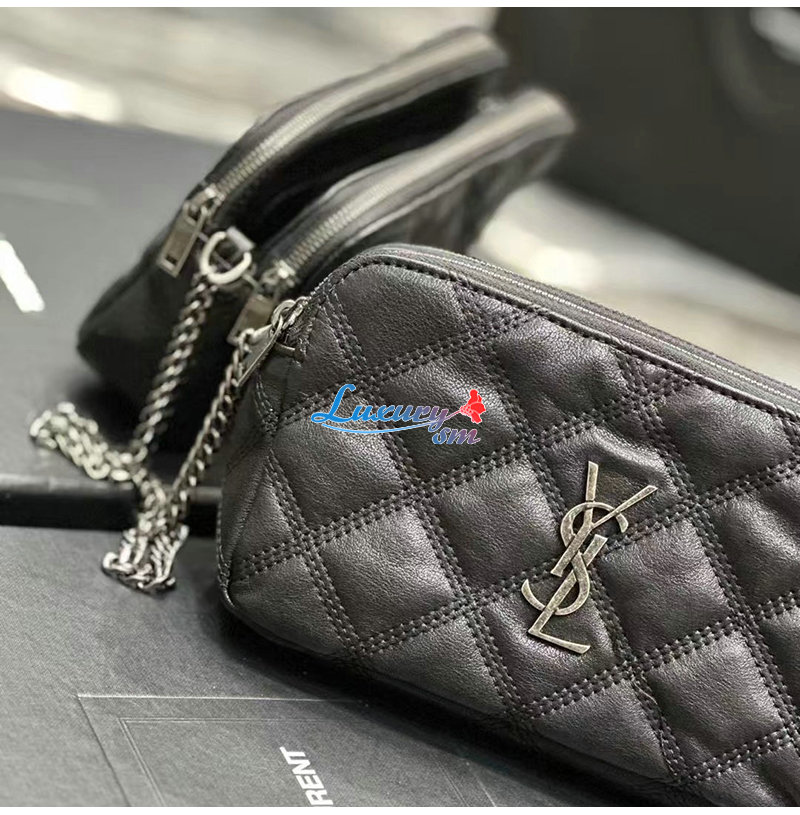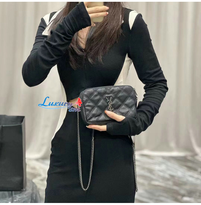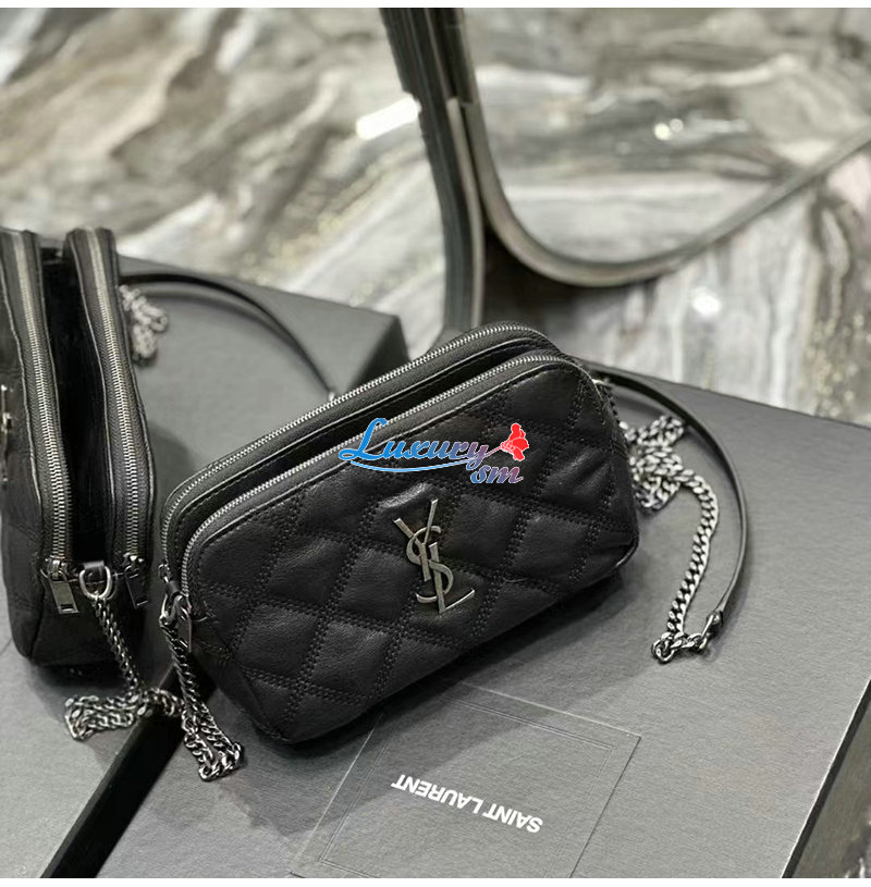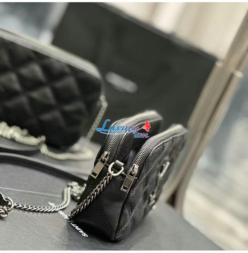 YSL 이니셜로 장식된 다이아몬드 퀼팅 더
