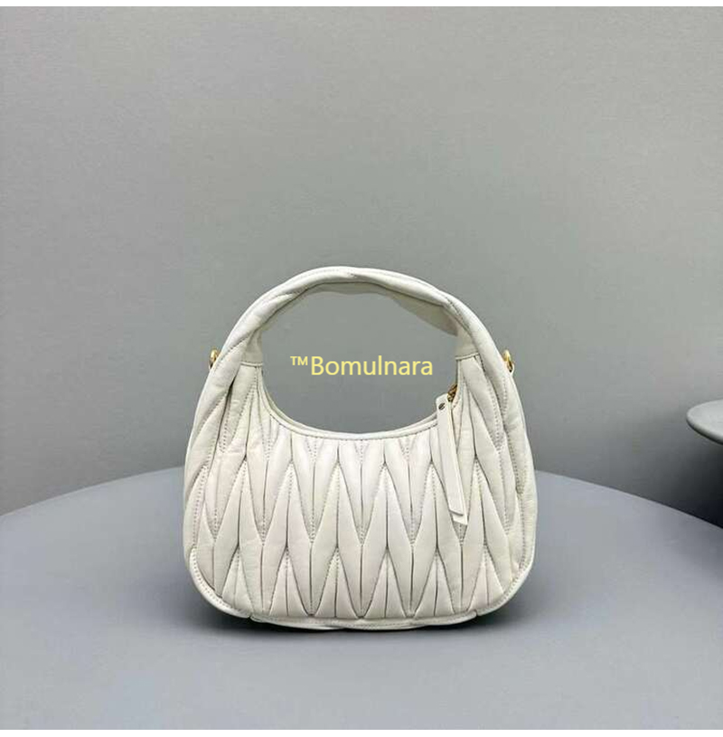 [스페셜오더]MIUMIU-5BC125 미우미우 화이트 완더 마테라쎄 나파 가죽 호보 스몰 숄더백