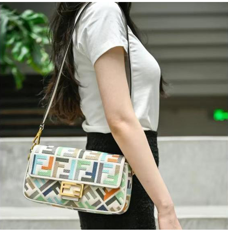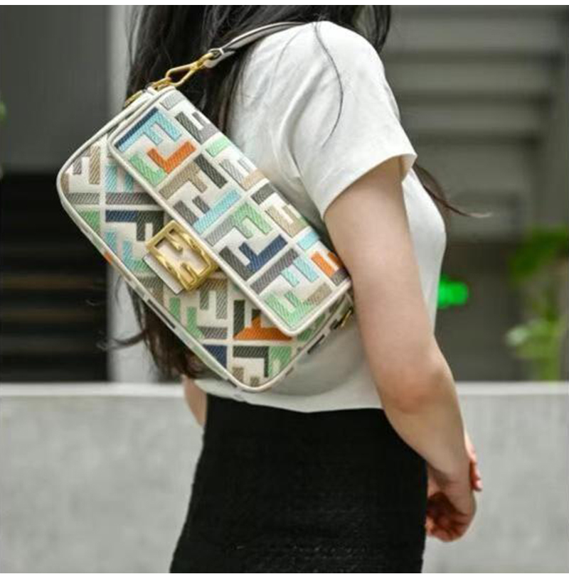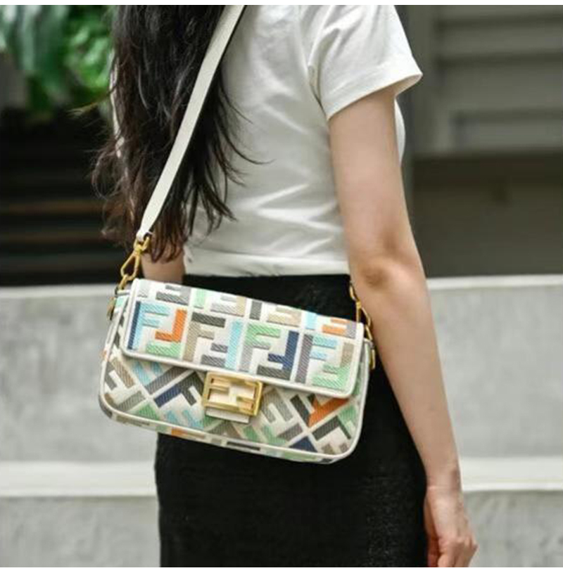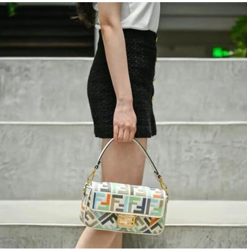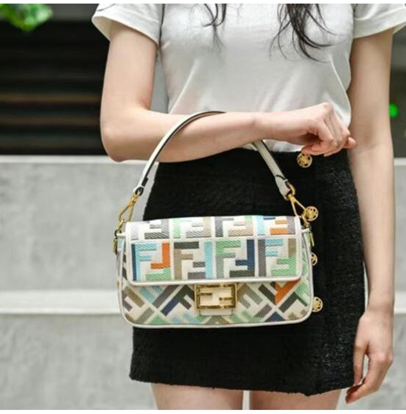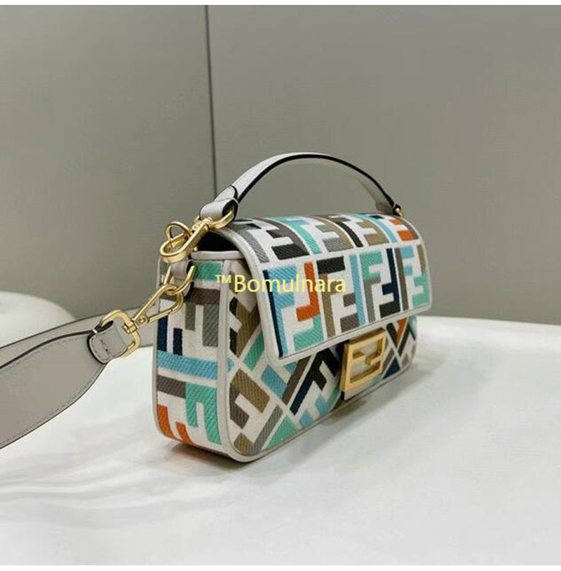 [스페셜오더]FENDI-8BR600 펜디 멀티컬러 FF 글레이즈 패브릭 인레이 미디엄 바게트 백 가격 : 480,000원