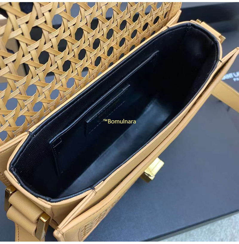 [스페셜오더]SAINT LAURENT-634306 생 로랑 브라운 케인워크 베지터블 태닝 가죽 솔페리노 스몰 사첼백 19CM