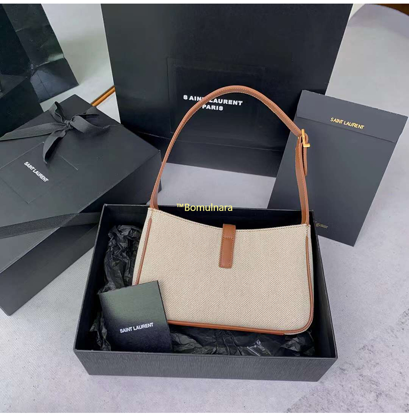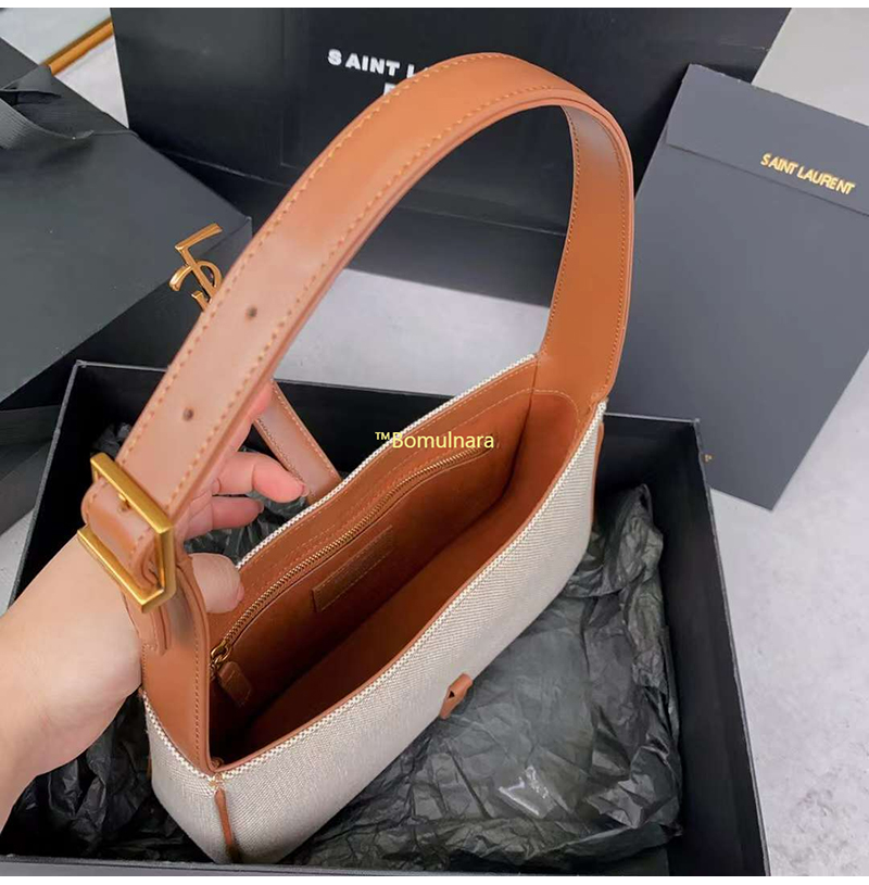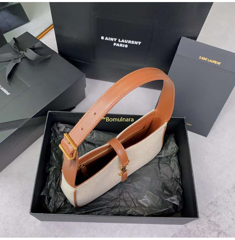 [스페셜오더]SAINT LAURENT-657228 생 로랑 내추럴/브라운 코튼 캔버스 LE 5 7 스몰 호보백