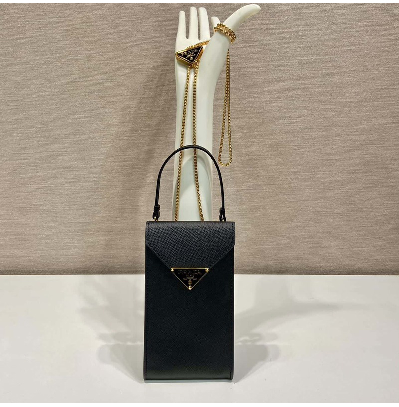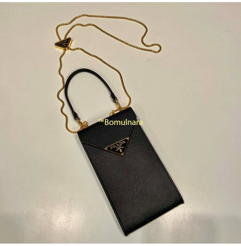 PRADA-1BP050 프라다 블랙 사피아노 가죽 체인