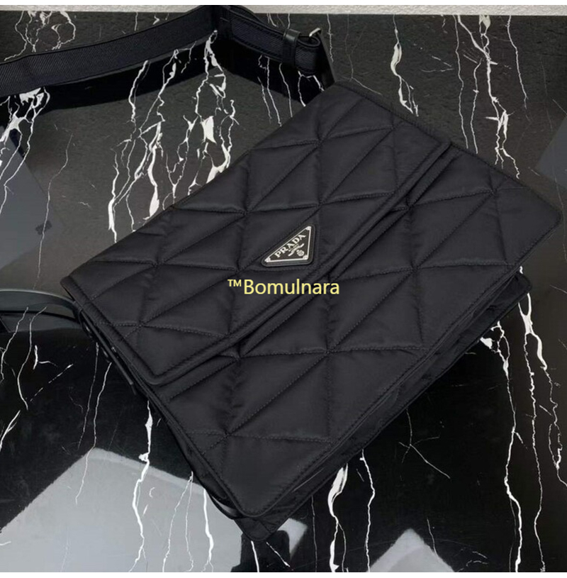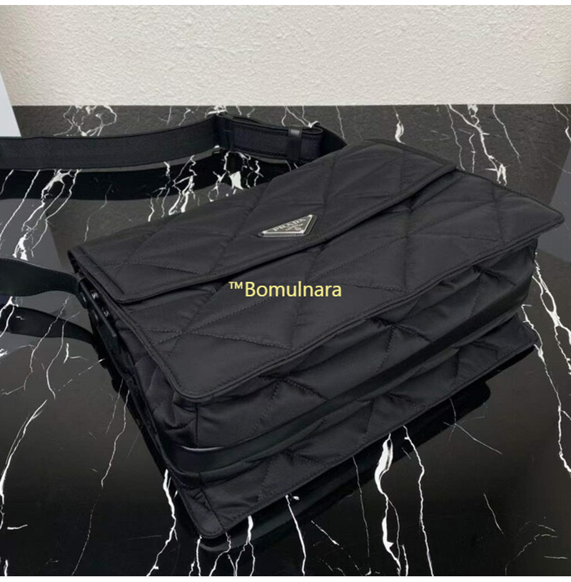 [스페셜오더]PRADA-2VA009 프라다 블랙 리나일론 탑스티치 장식 트래블 백
