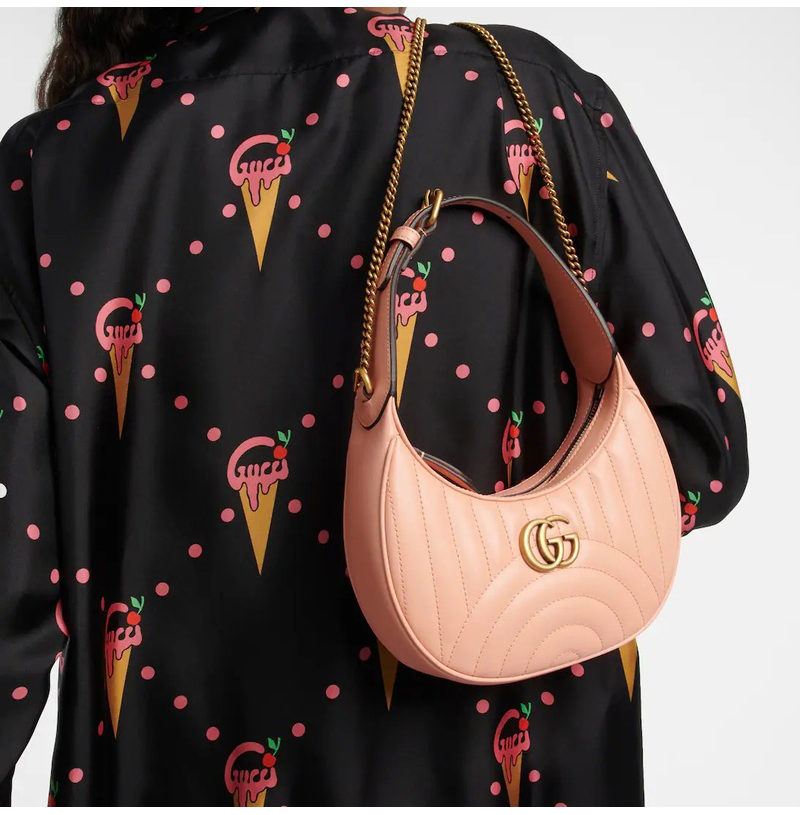 [스페셜오더]GUCCI-699514 5306 구찌 라일락 GG 마몽 마틀라세 하프문 쉐입 체인 미니백