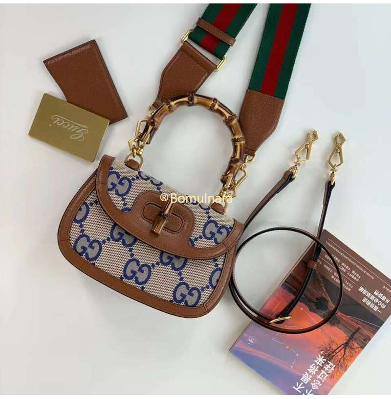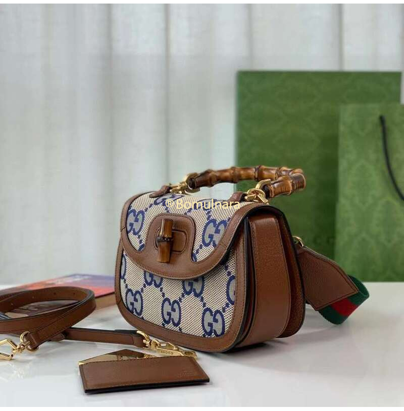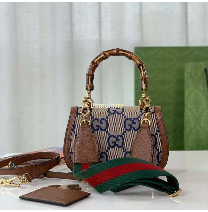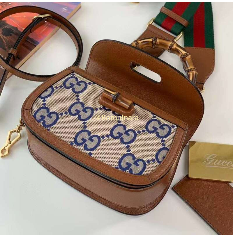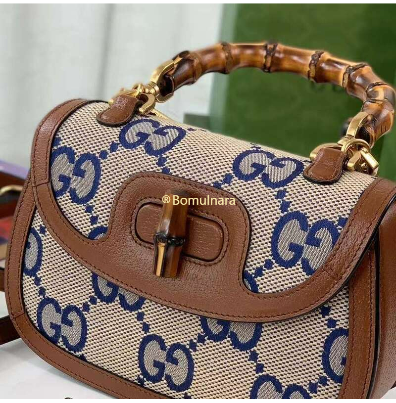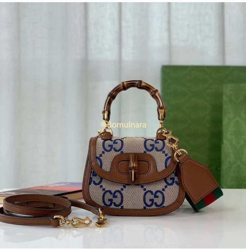 [스페셜오더]GUCCI-675797 2568 구찌 블루/베이지 맥시 GG 뱀부 1947 코리아 익스클루시브 스몰 핸드백