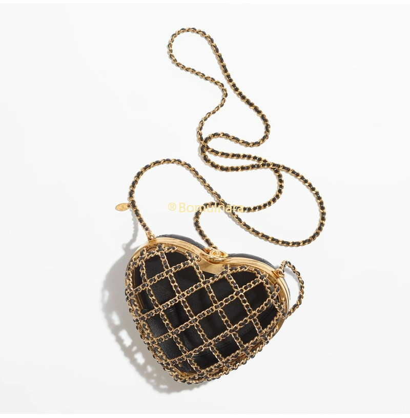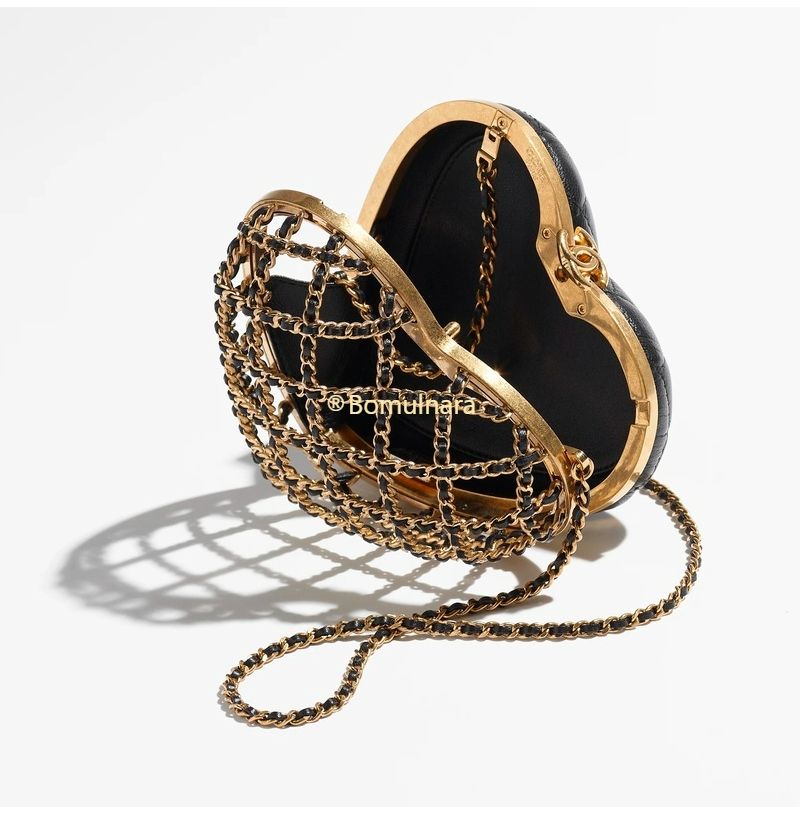 [스페셜오더]CHANEL-AS4027 샤넬 23SS 블랙 램스킨 골드 메탈 하트 미노디에르 체인 클러치&이브닝 백