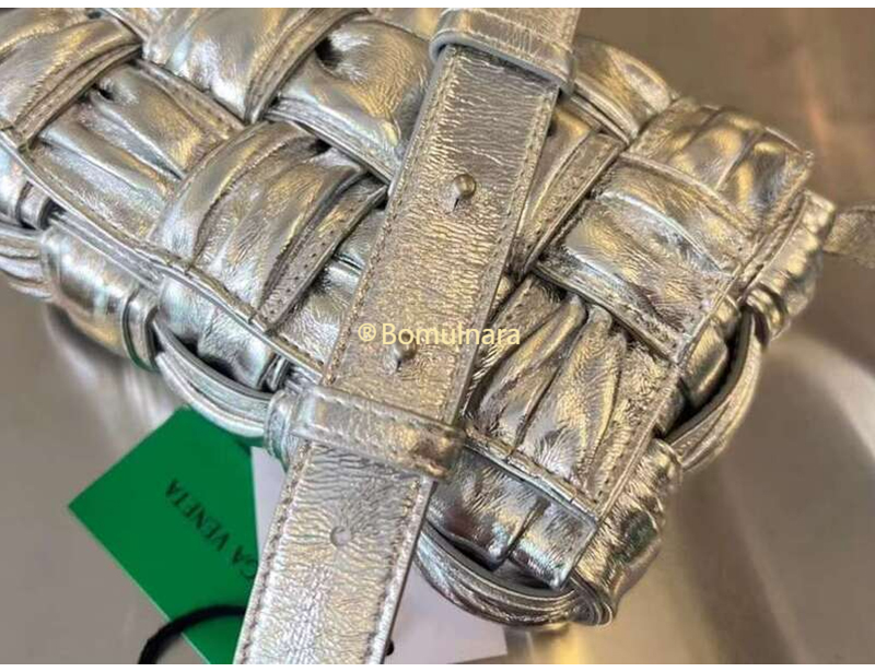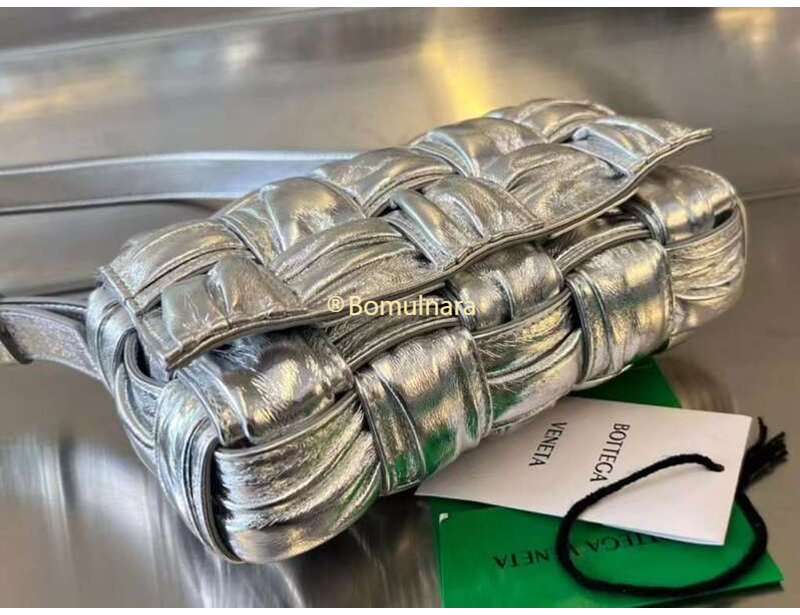 [스페셜오더]BOTTEGA VENETA-736253 보테가 베네타 메탈릭 실버 풀라드 인트레치오 스몰 카세트 백 19CM