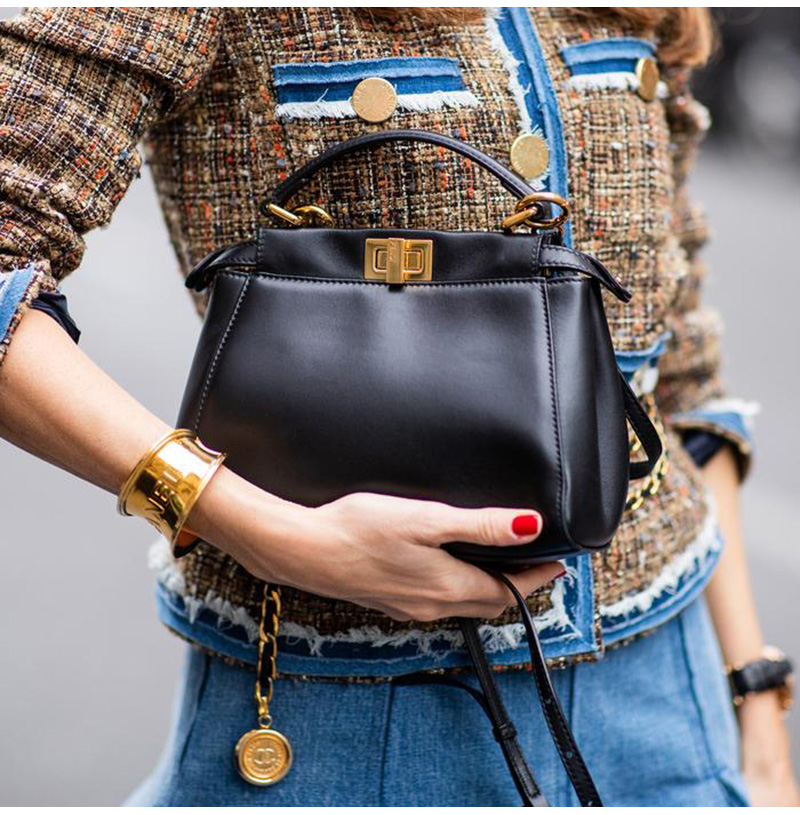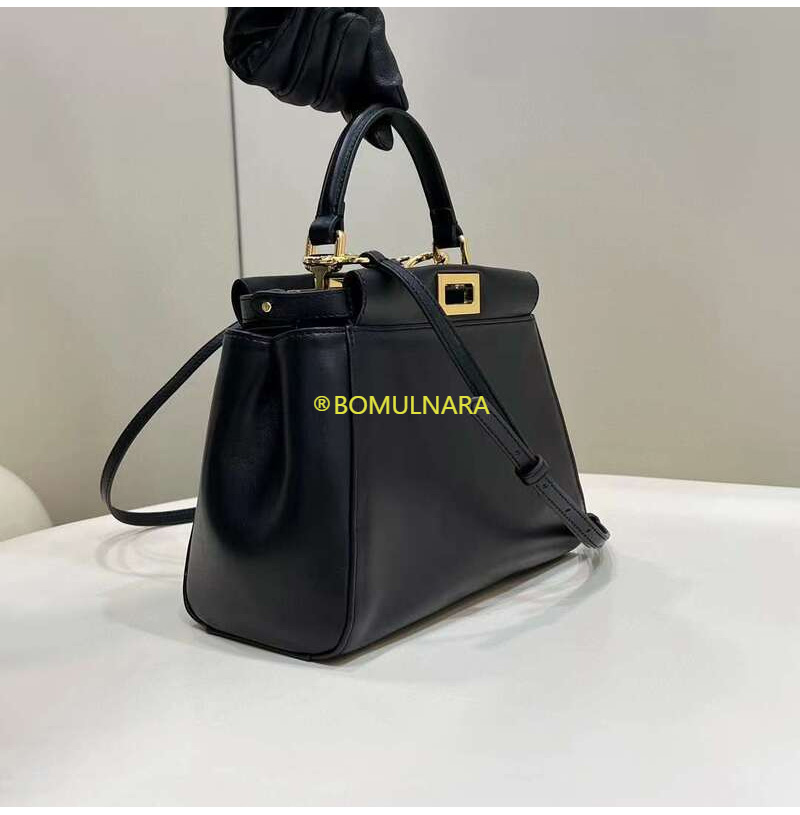 [스페셜오더]FENDI-8BN244 펜디 블랙 나파 가죽 골드 미니 피카부 핸드백 23CM
