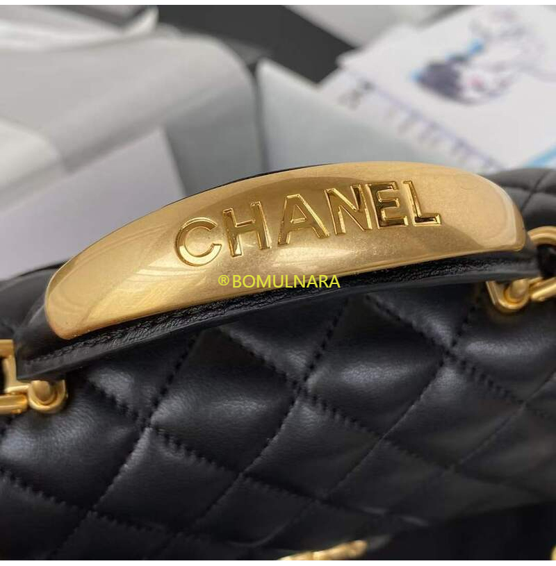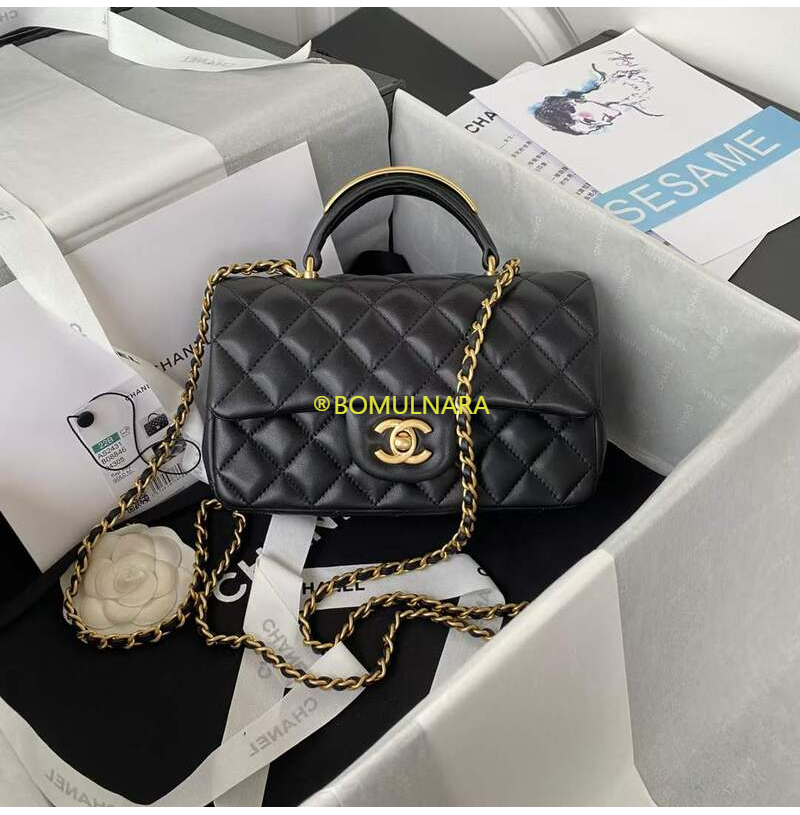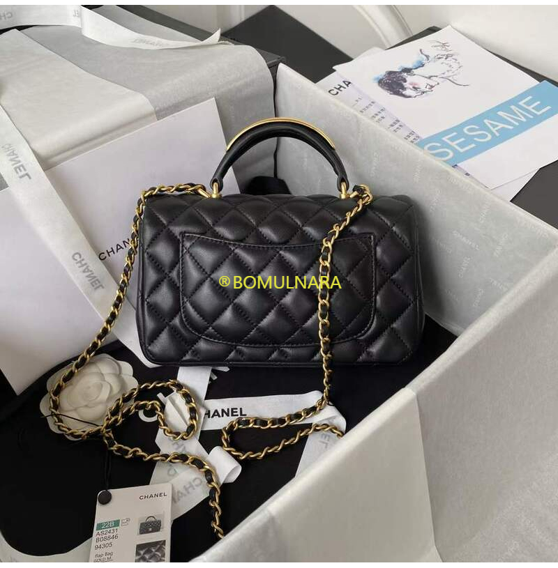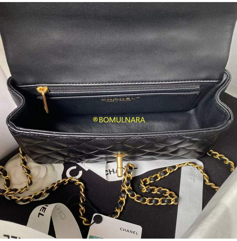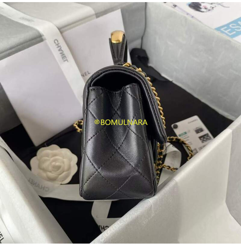 [스페셜오더]CHANEL-AS2431 샤넬 22S 블랙 램스킨 골드 핸들 장식 플랩 미니 탑핸들 백
