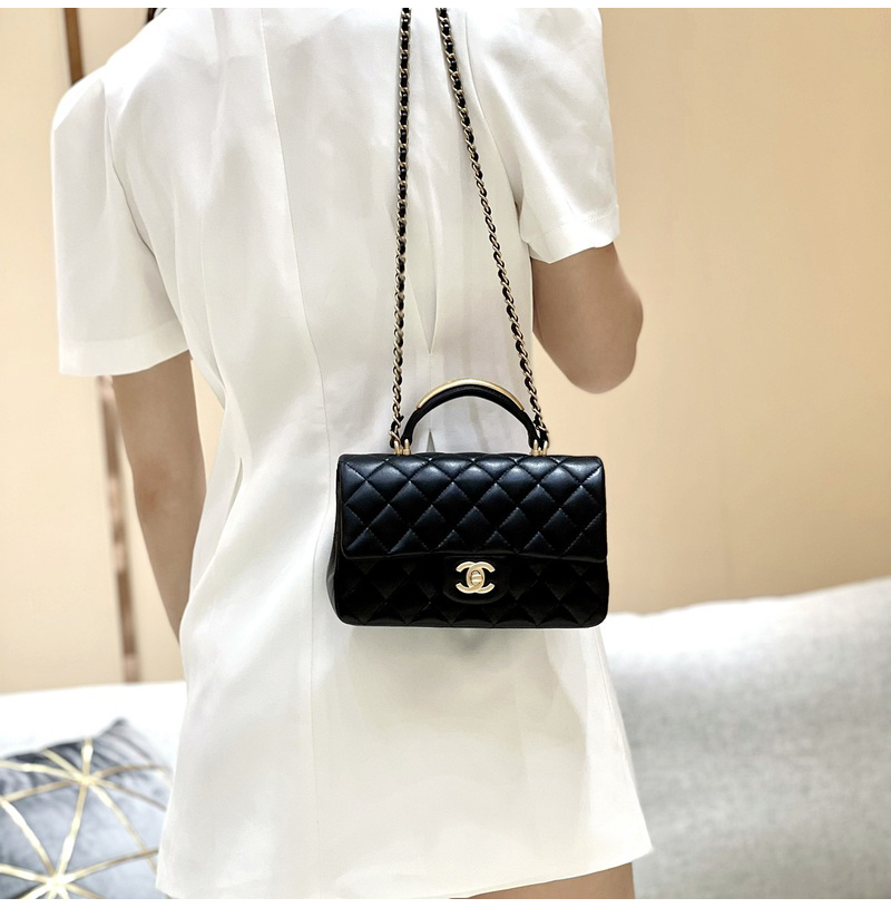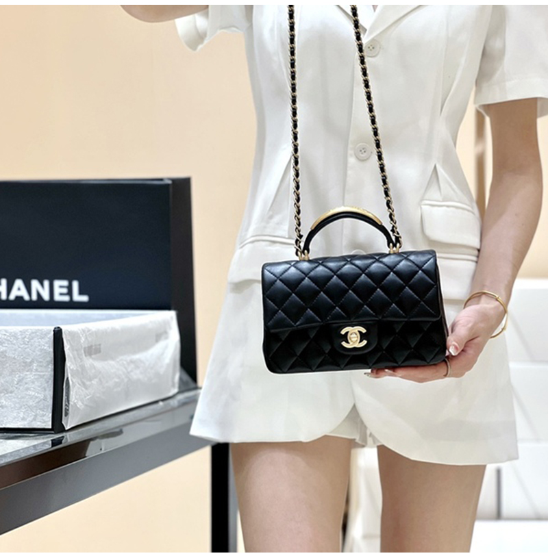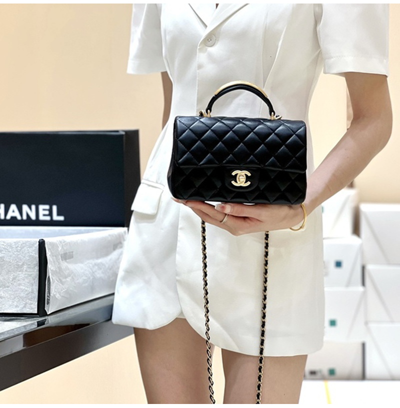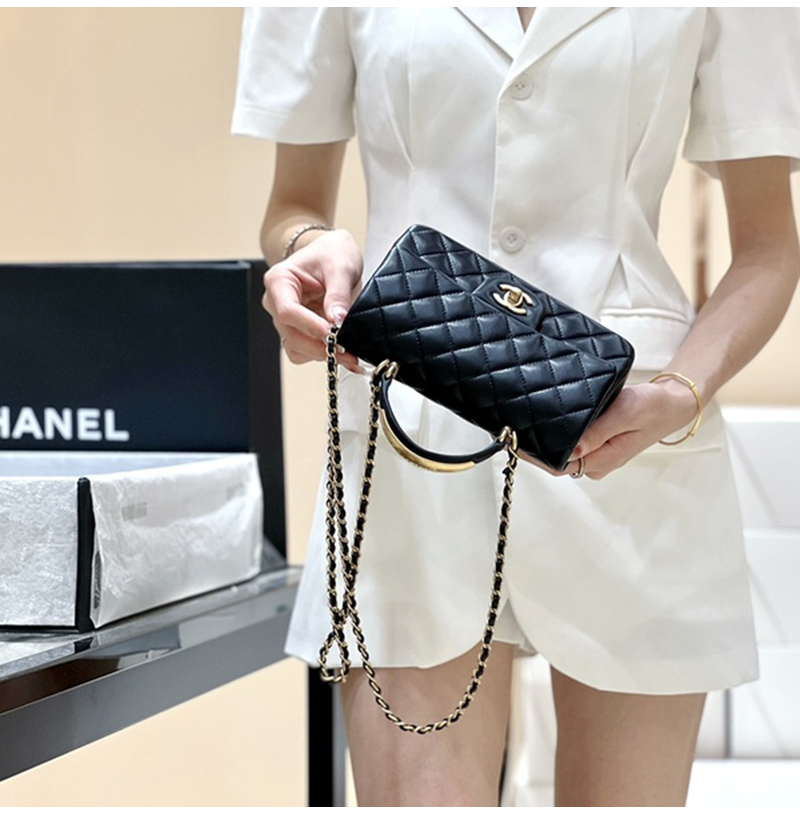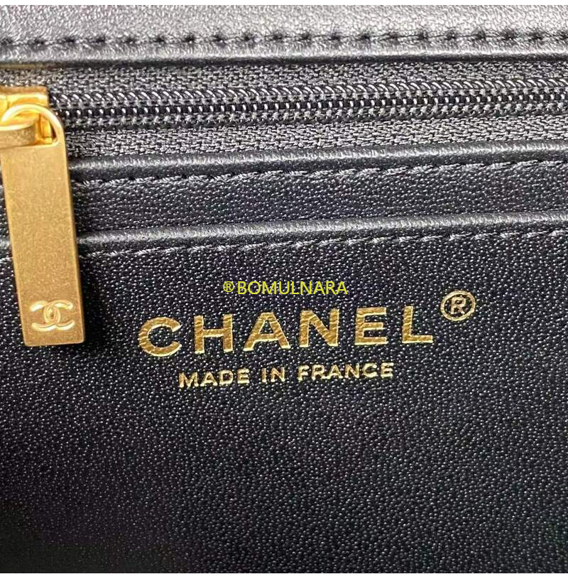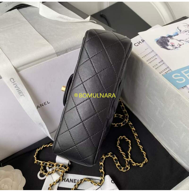 [스페셜오더]CHANEL-AS2431 샤넬 22S 블랙 램스킨 골드 핸들 장식 플랩 미니 탑핸들 백