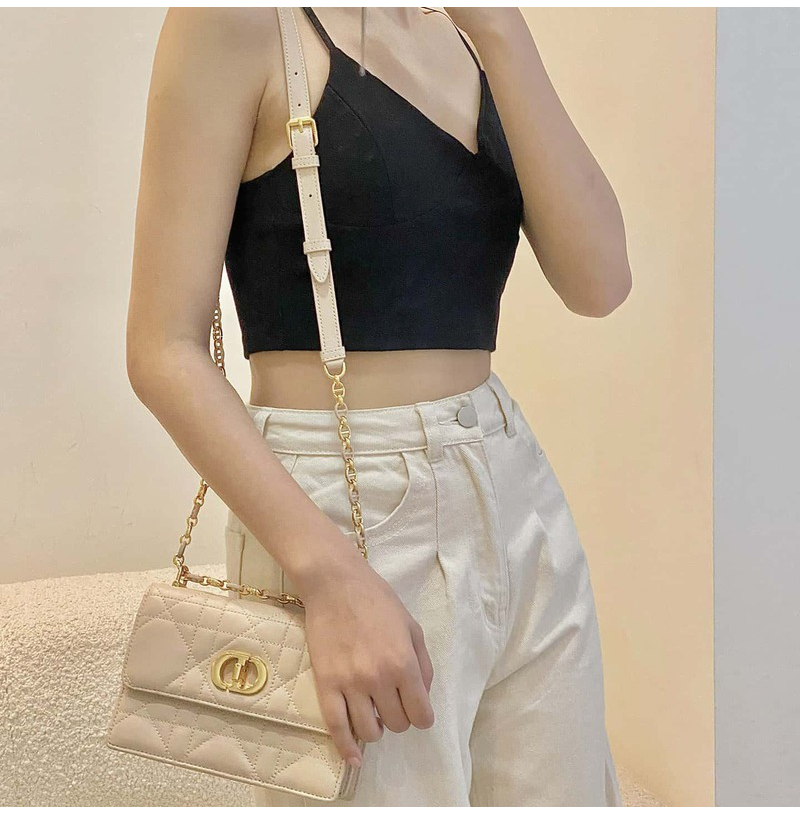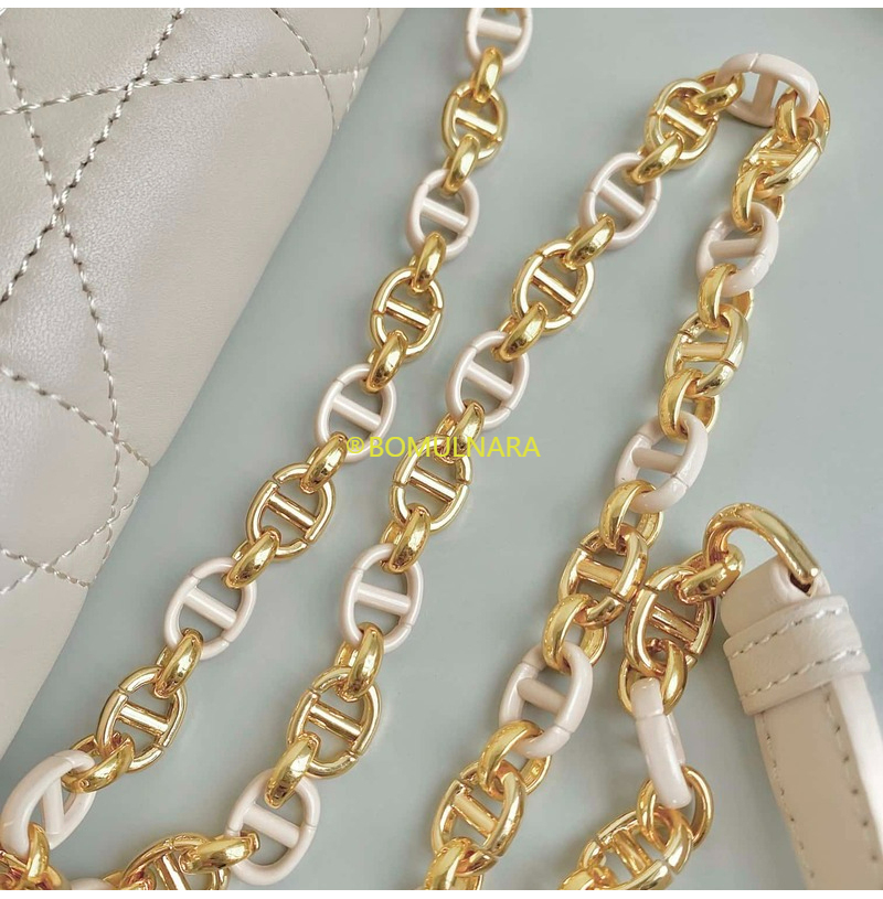 조절 가능한 체인 숄더 스트랩이 가죽 인서트로