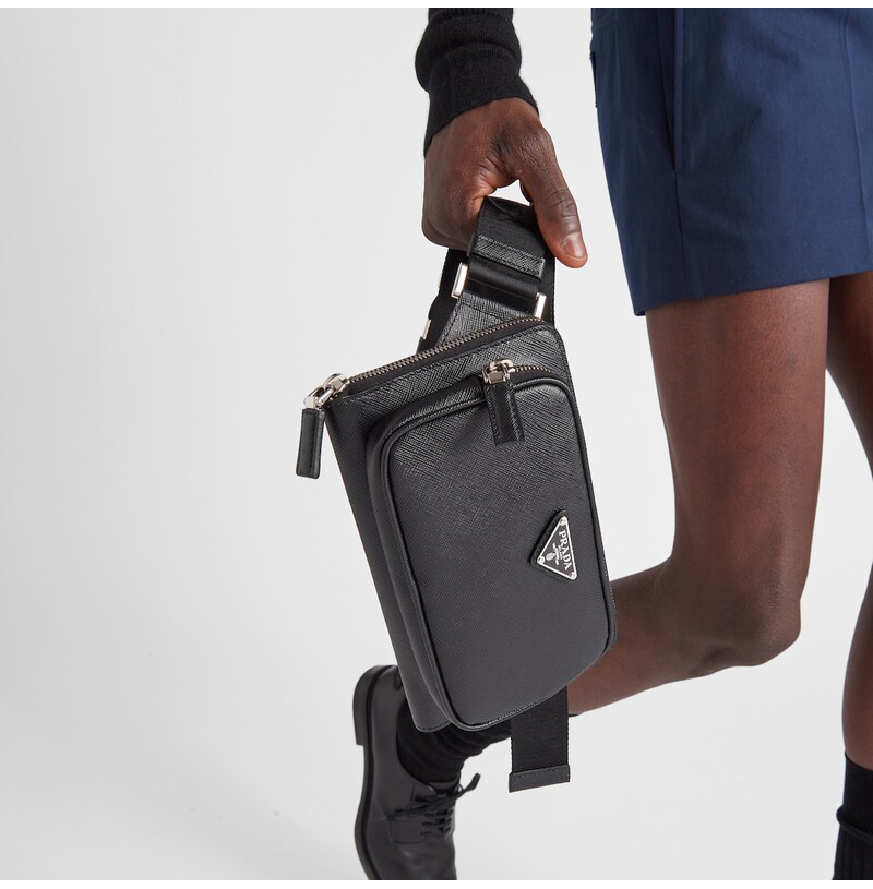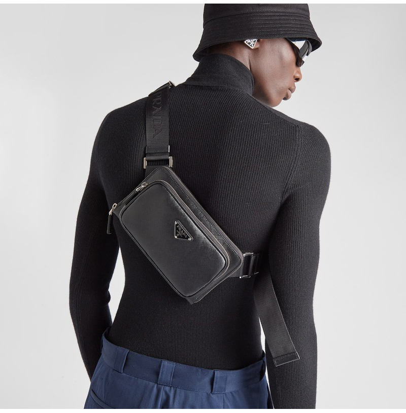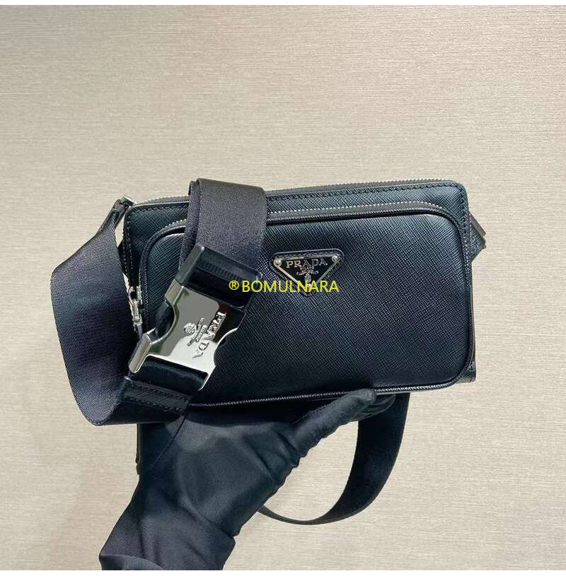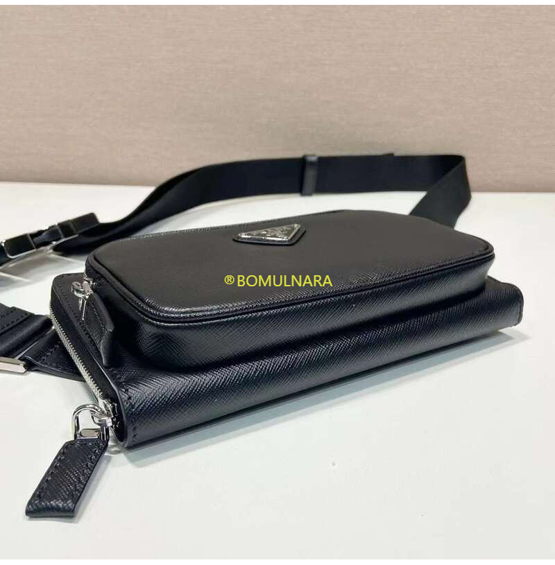 [스페셜오더]PRADA-2VH156 프라다 블랙 사피아노 가죽 하이브리드 벨트 백 21CM