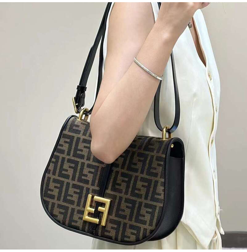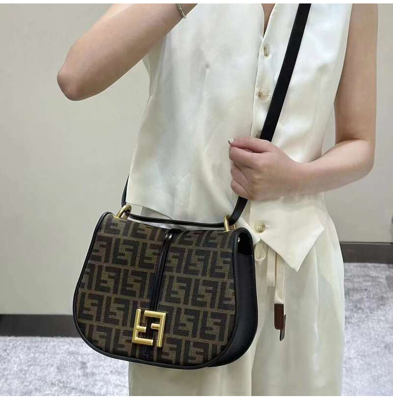 [스페셜오더]FENDI-8BT366 펜디 브라운 FF 자카드 패브릭 커 몬 미디엄 사첼 백 25CM