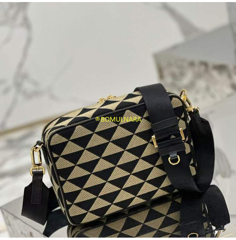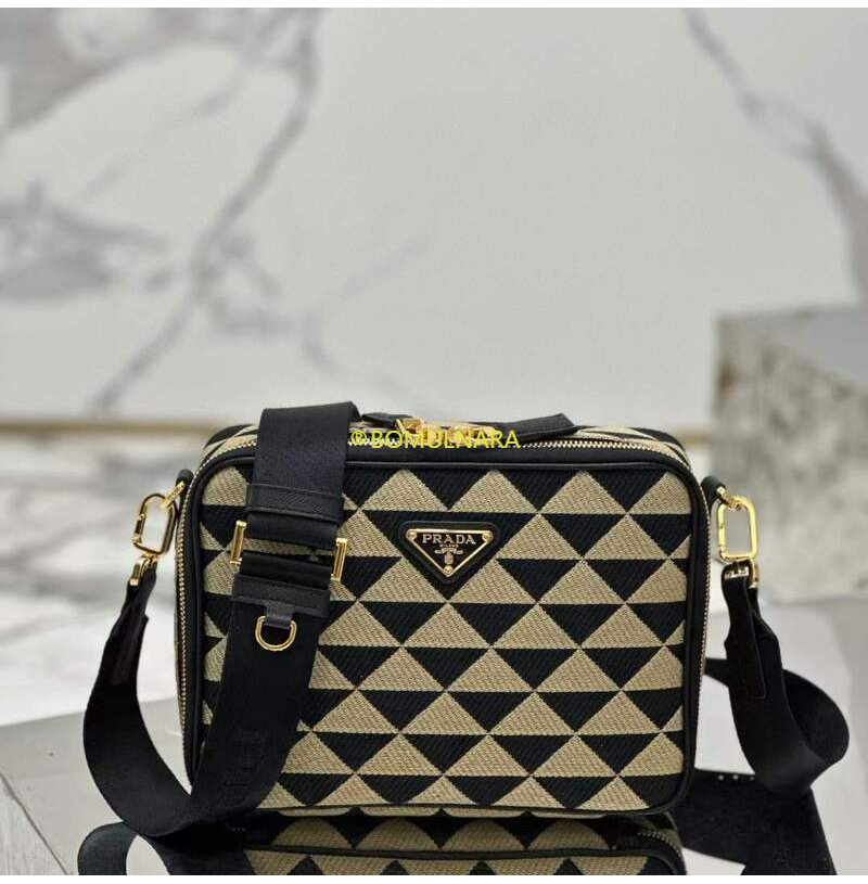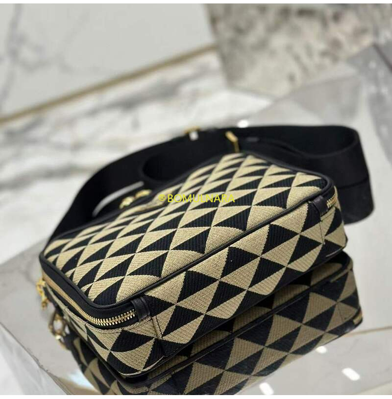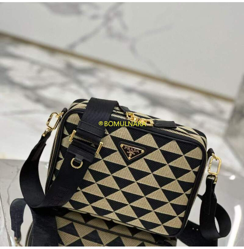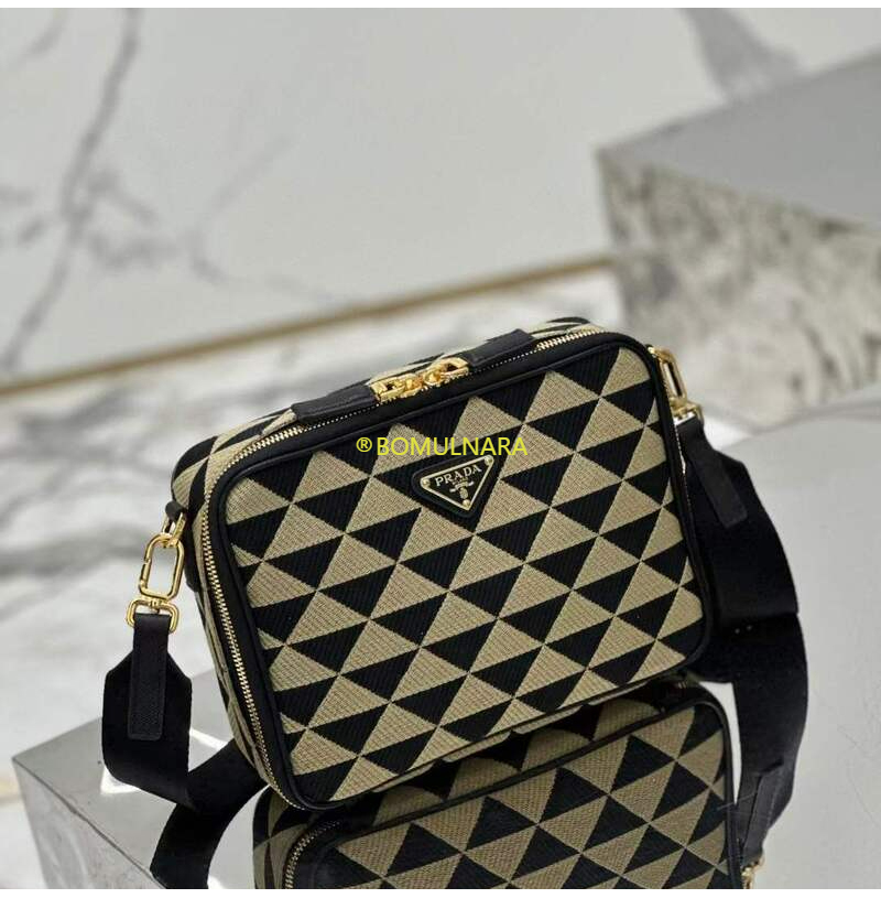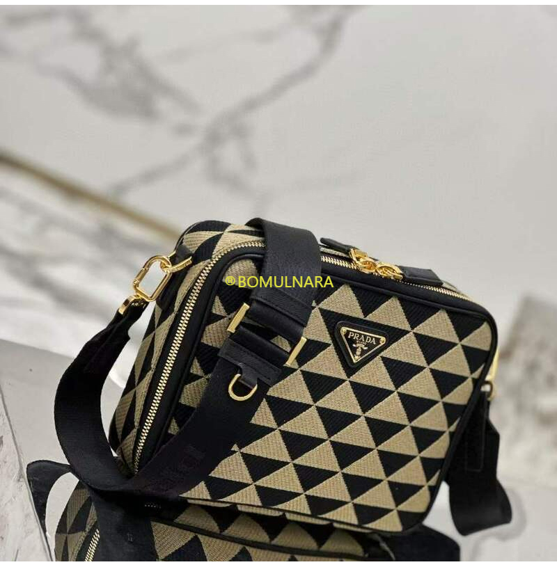 [스페셜오더]PRADA-2VH069 프라다 블랙/베이지 브리크 자수 패브릭 백 22CM