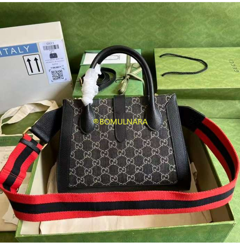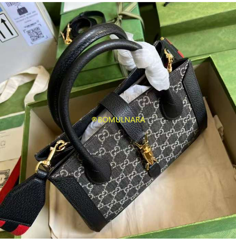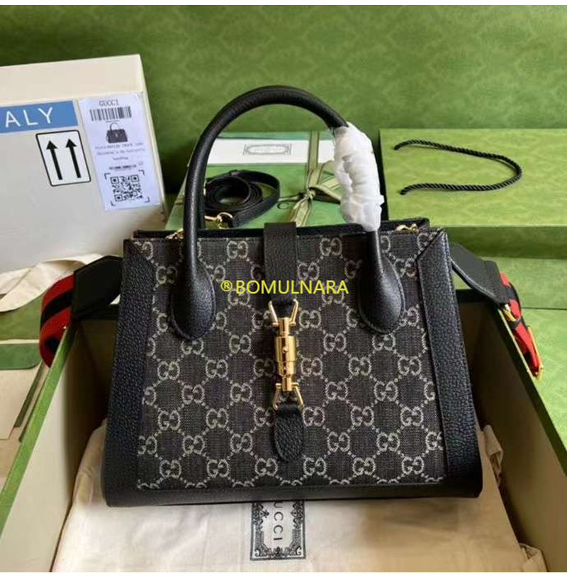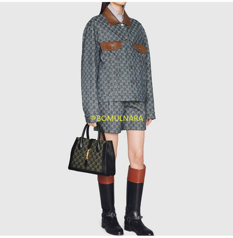[스페셜오더]GUCCI-685129 1294 구찌 블랙/아이보리 GG 데님 재키 1961 미디엄 토트백
