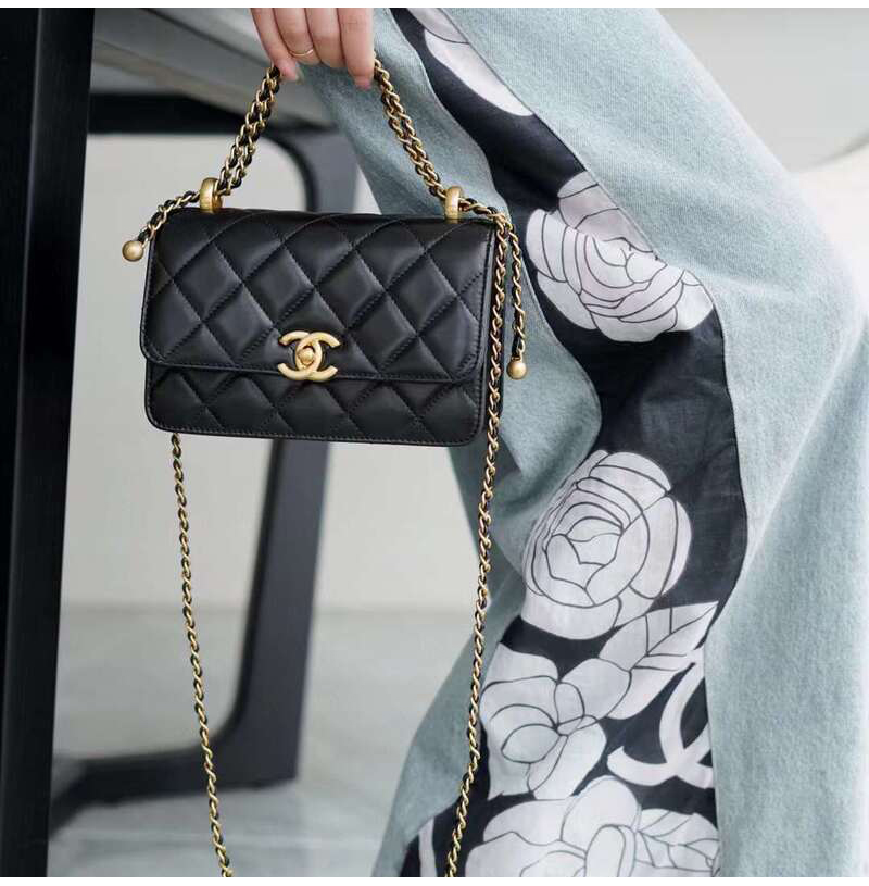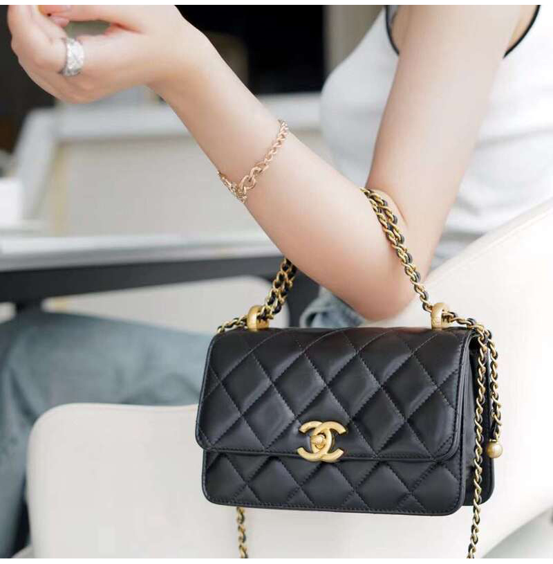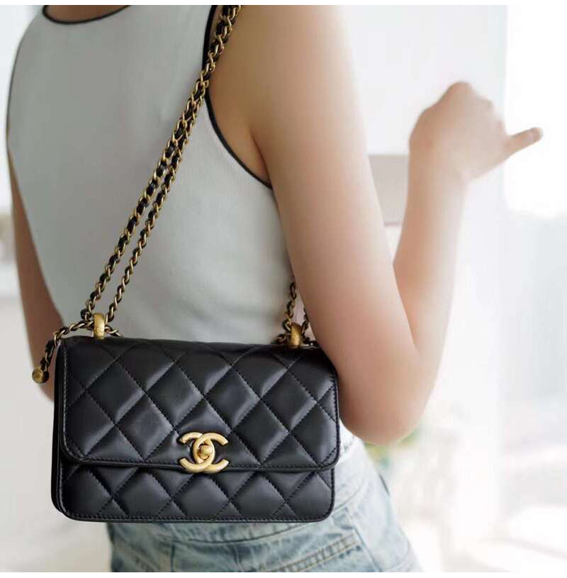 CHANEL-AS2615 샤넬 블랙 램스킨 골드 체인 미니
